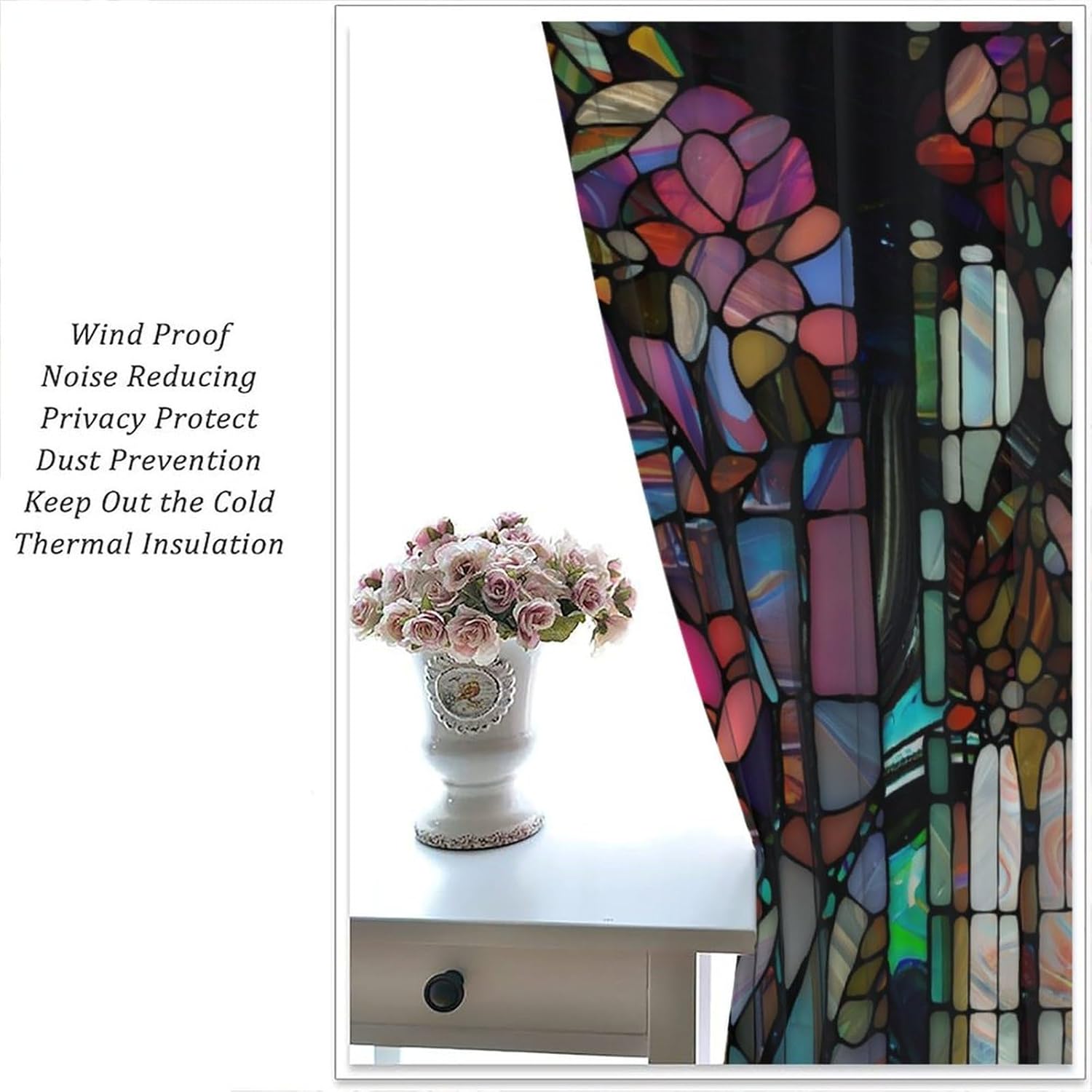 Stained Glass Curtains,Vintage Colorful Abstract Art Home Decor Drapes for Bedroom Living Room Kitchen Window Treatment 2 Panels Set Total Size 84" W X 84" L Inch