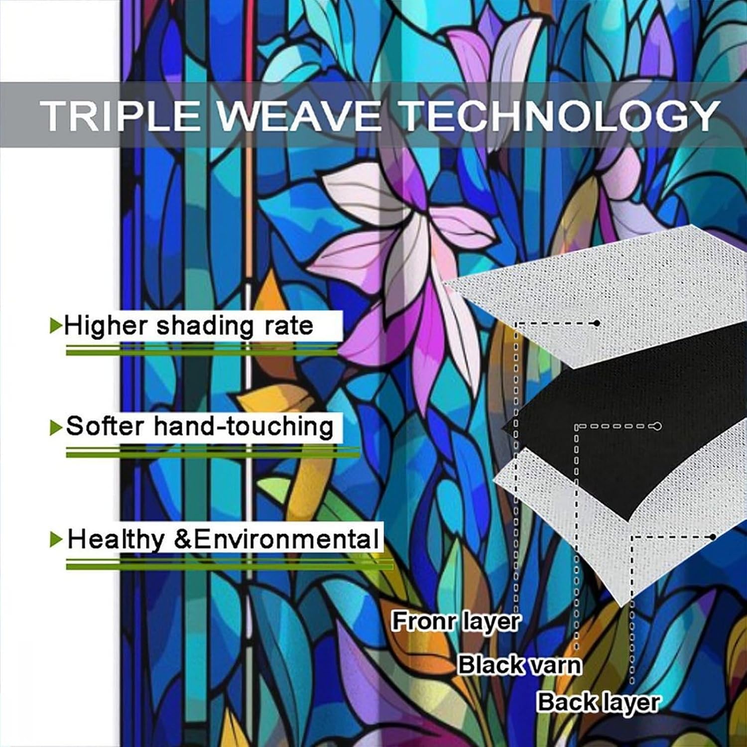 Stained Glass Curtains,Abstract Colorful Floral Geometric Art Home Decor Drapes for Bedroom Living Room Kitchen Window Treatment 2 Panels Set Total Size 42" W X 63" L Inch