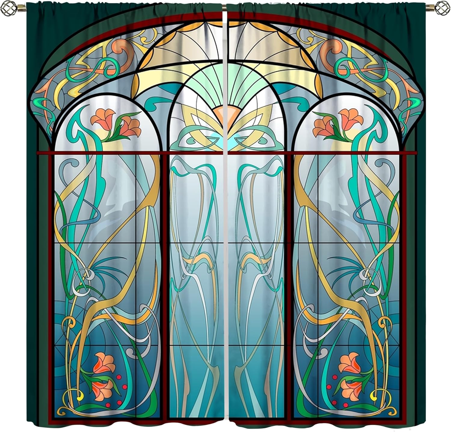 Stained Glass Curtains, Retro Mid Century Boho Abstract Art Home Decor Drapes for Bedroom Living Room Kitchen Window Treatment 2 Panels Set Total Size 52" W X 84" L Inch