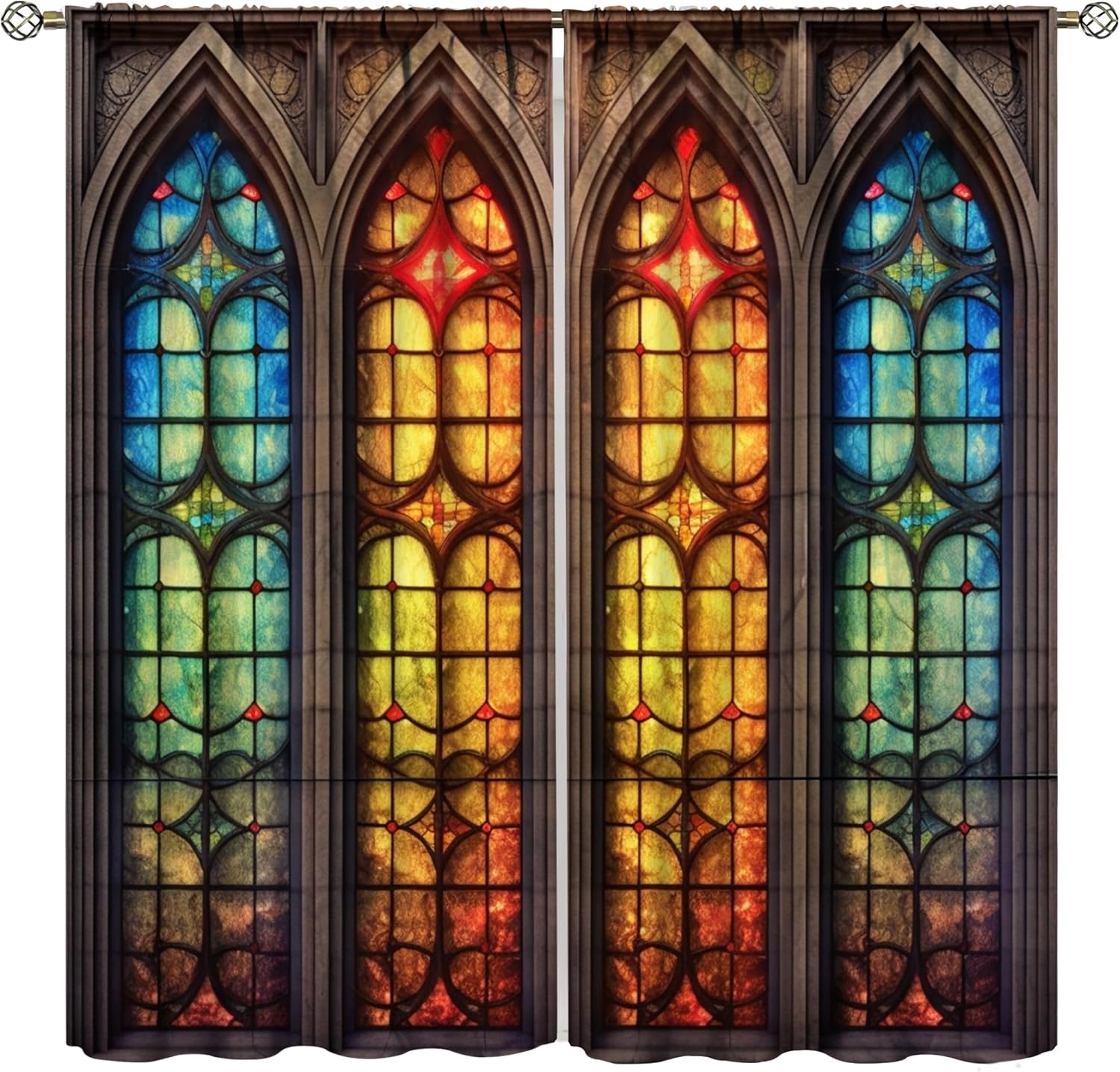 Stained Glass Curtains,Mid Century Vintage Style Abstract Art Home Decor Drapes for Bedroom Living Room Kitchen Window Treatment 2 Panels Set Total Size 52" W X 84" L Inch