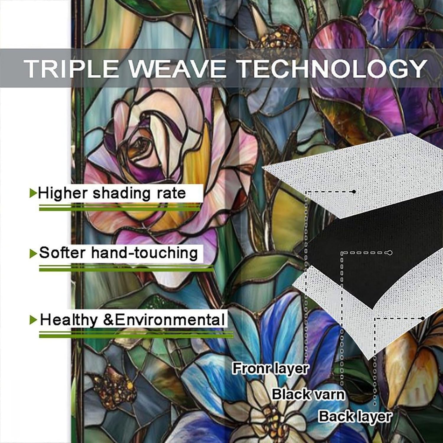Stained Glass Curtains,Retro Colored Glass Flowers Art Home Decor Drapes for Bedroom Living Room Kitchen Window Treatment 2 Panels Set Total Size 42" W X 63" L Inch