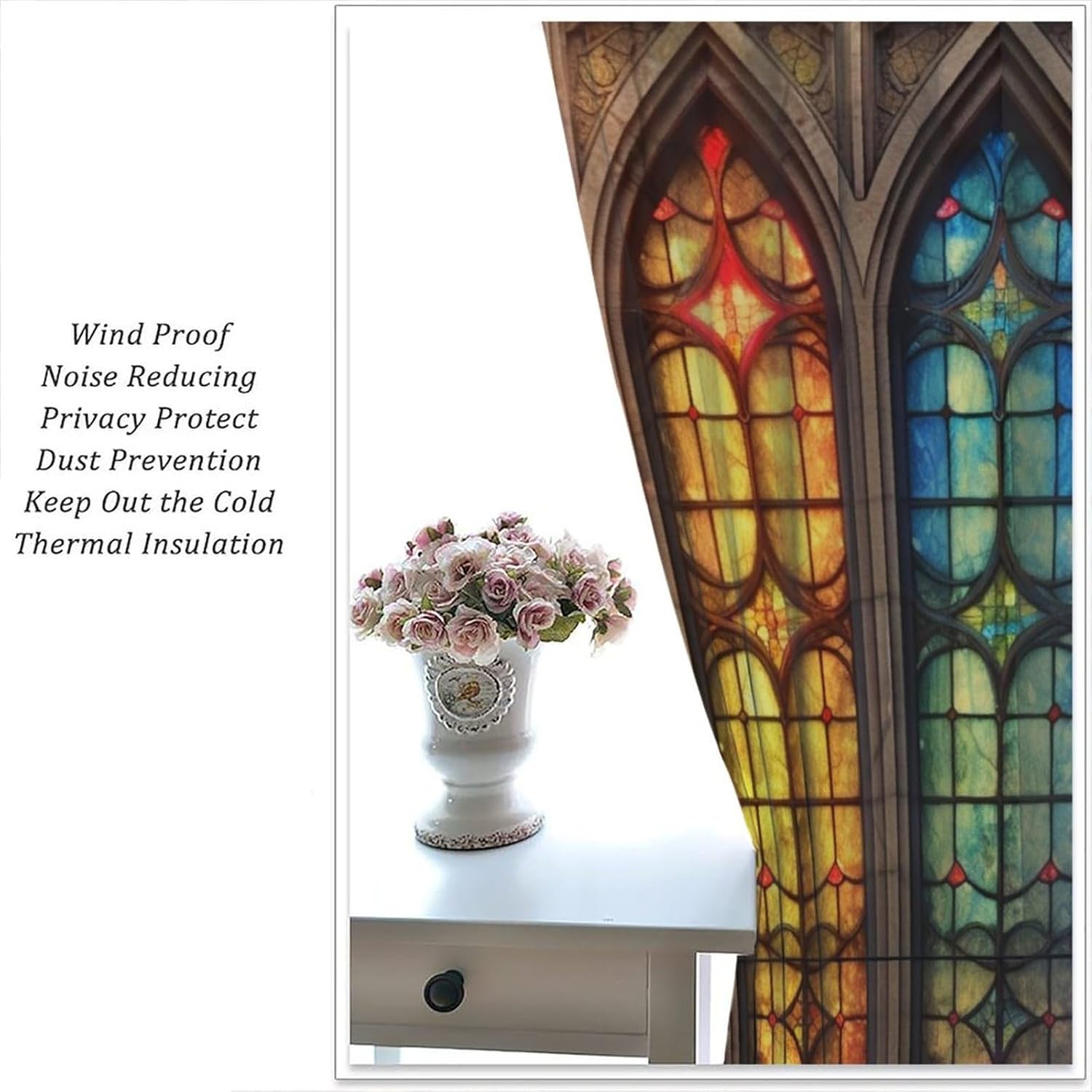 Stained Glass Curtains,Mid Century Vintage Style Abstract Art Home Decor Drapes for Bedroom Living Room Kitchen Window Treatment 2 Panels Set Total Size 63" W X 72" L Inch