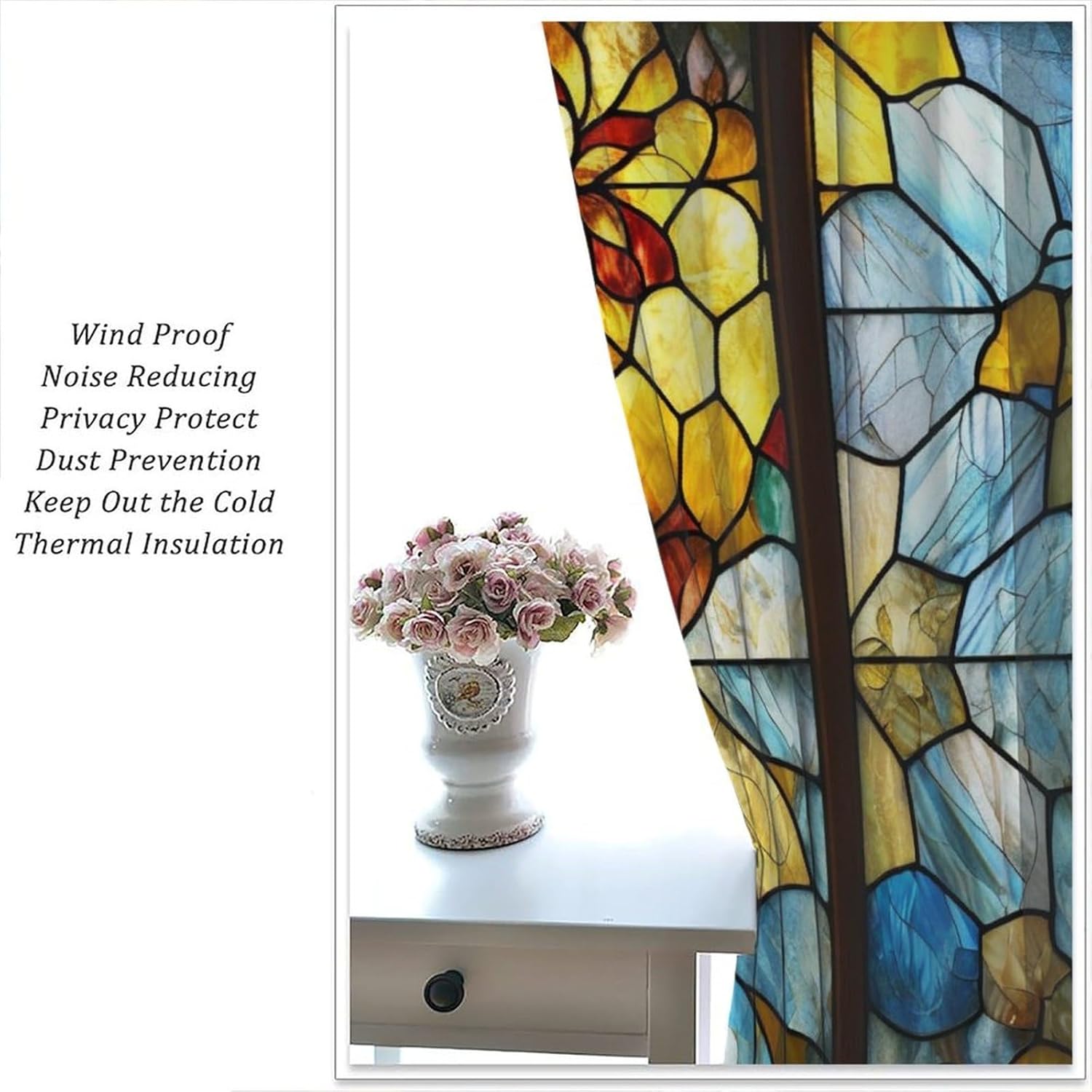 Stained Glass Curtains,Retro Abstract Colorful Art Home Decor Drapes for Bedroom Living Room Kitchen Window Treatment 2 Panels Set Total Size 42" W X 54" L Inch