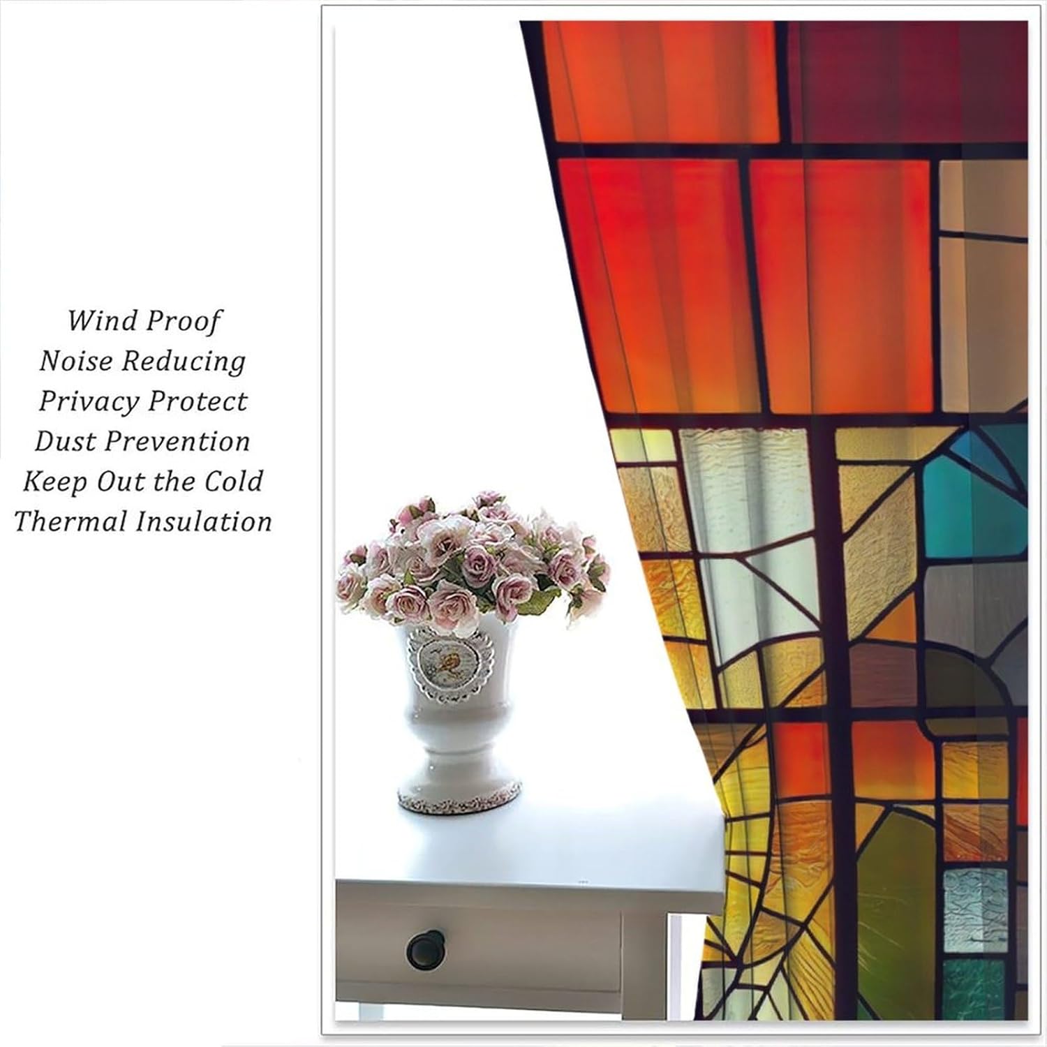 Stained Glass Curtains,Retro Abstract Colorful Geometry Textures Art Home Decor Drapes for Bedroom Living Room Kitchen Window Treatment 2 Panels Set Total Size 52" W X 84" L Inch