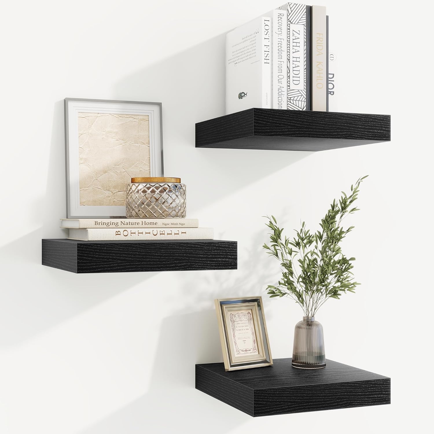 fuqing Floating Shelves for Wall, Bathroom Shelf Wall Mounted for Storage, Shelves with Invisible Bracket for Bedroom, Kitchen, Living Room, Farmhouse Small Book Shelf, 6.5 Inch Set of 3, Black