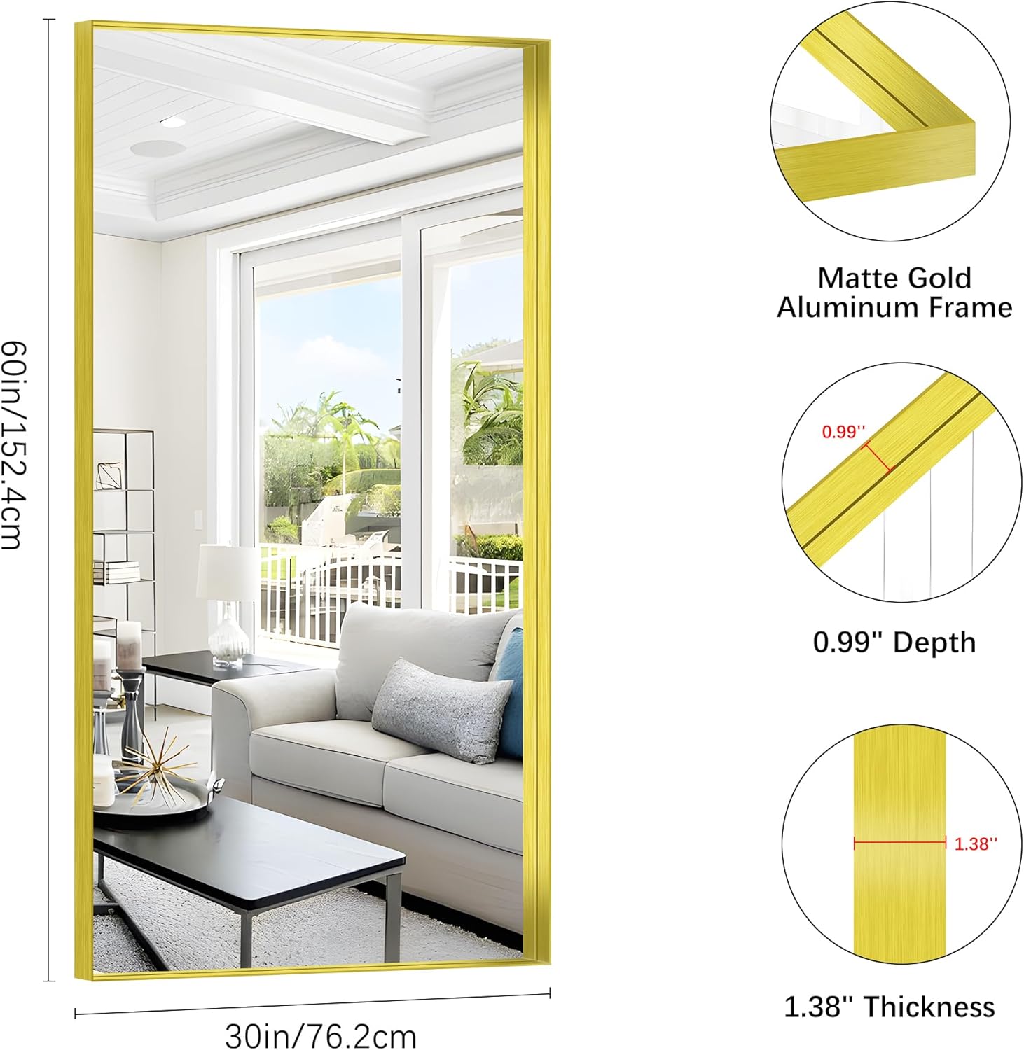 - Sleek & Sturdy Aluminum Alloy Frame: This elegant gold bathroom mirror features a lightweight yet durable aluminum alloy frame, designed to resist deformation, chipping, and corrosion. The slim metallic profile adds a modern touch, elevating your space with a luxurious finish. Perfect as a wall-mounted or hanging mirror, it combines strength, style, and longevity