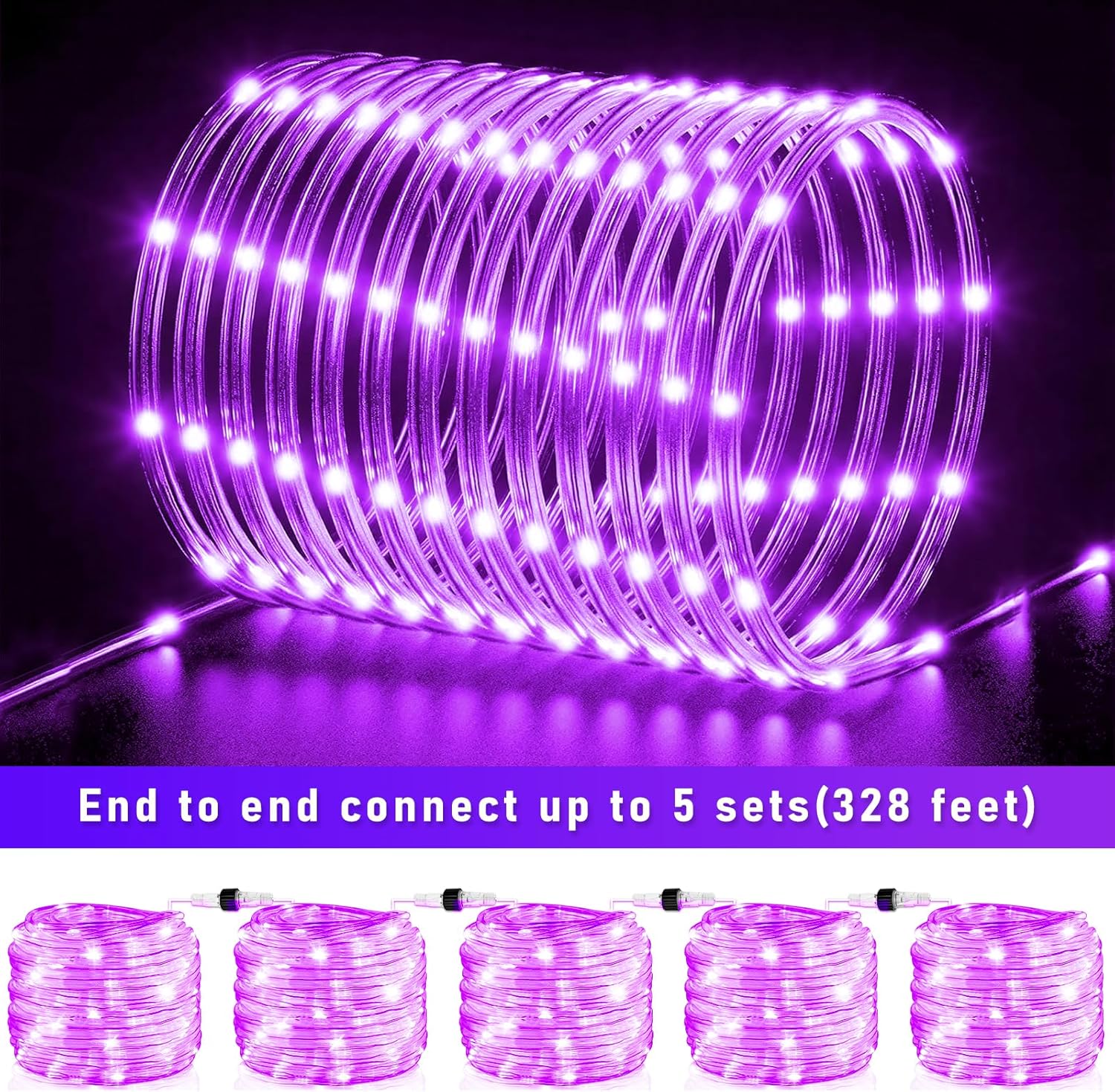 Purple Halloween Lights, 66FT 200 LED Rope Lights for Outside Waterproof with 8 Modes, Connectable Tube String Lights for Indoor, Garden, Backyard, Patio, Deck, Pool, Tree Decorations