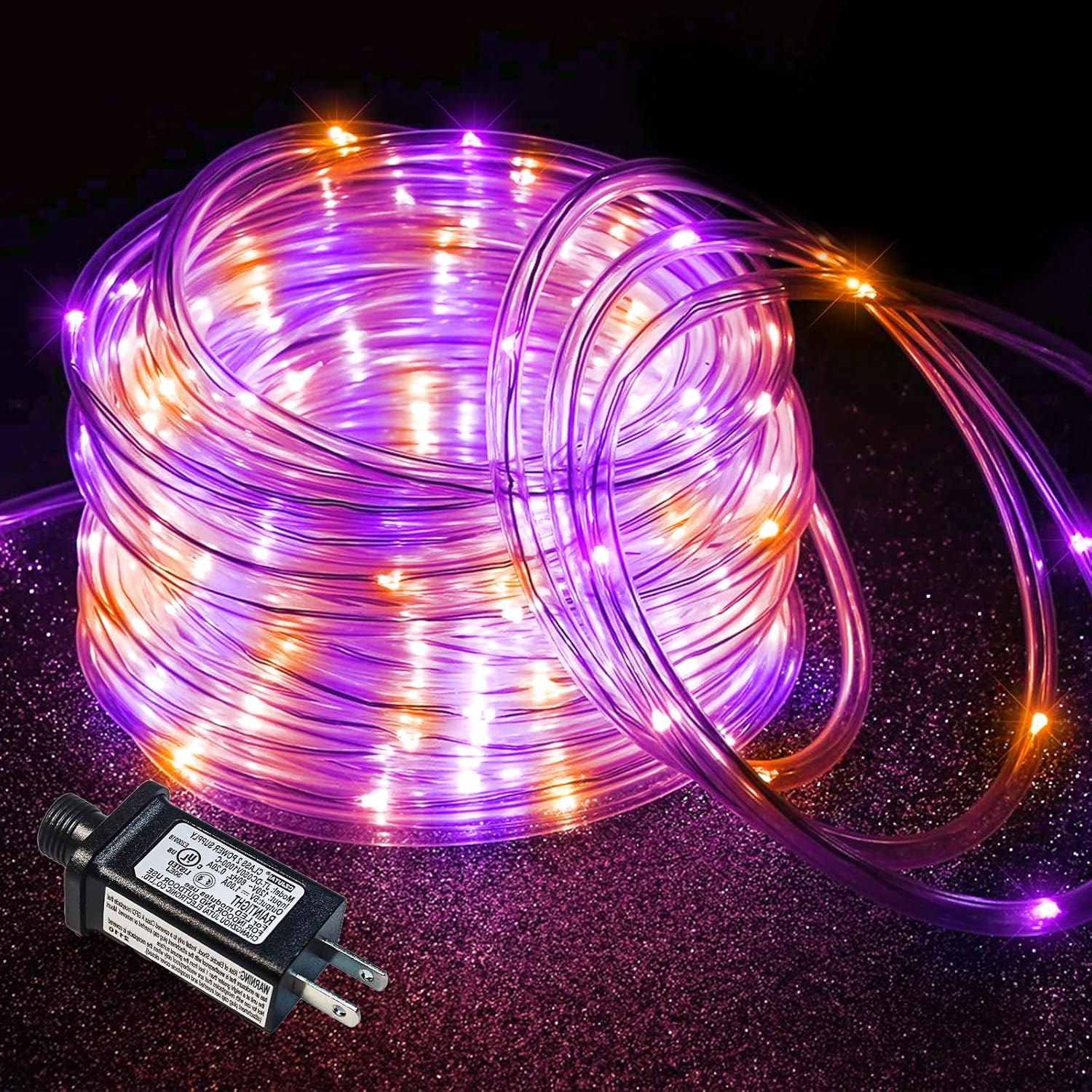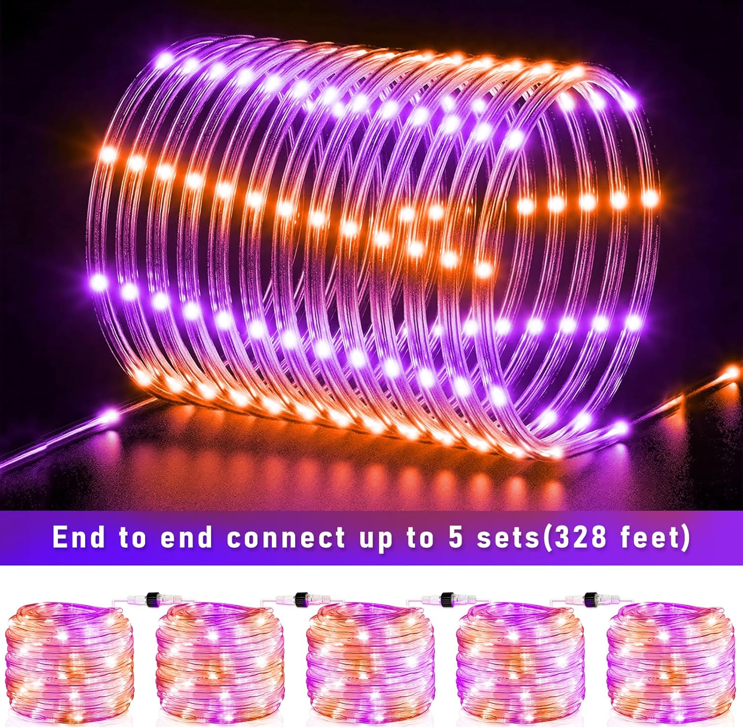 - 【Upgraded Connectable Rope Lights】- Our rope lights for outside feature a 66ft lighting length with a 6.6ft lead wire, total 72.6ft length. LED bulbs are spaced 4 inches apart to provide bright and soft lighting. The purple orange Halloween lights can be connected end to end up to 5 sets, long enough to meet your creative lighting decor needs.