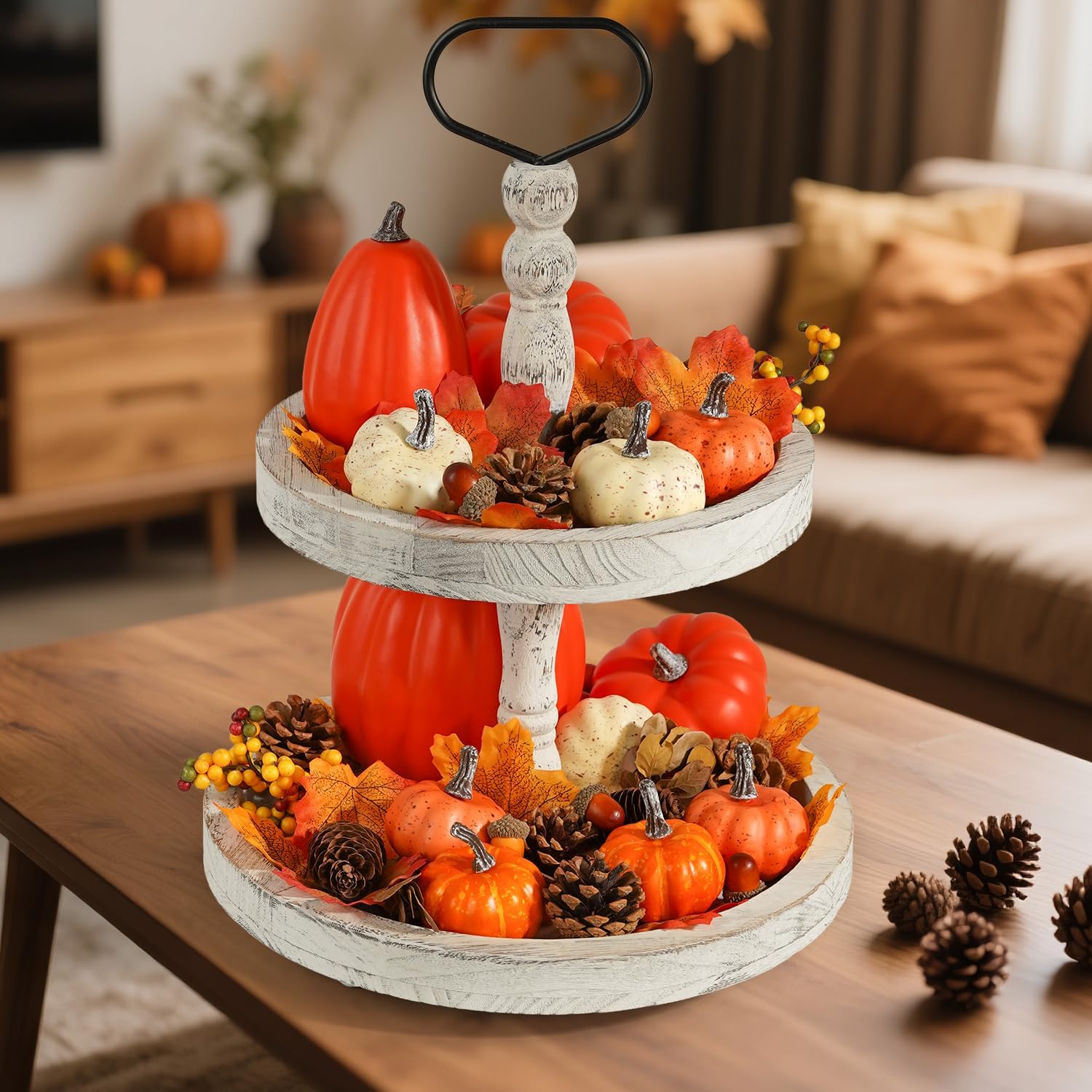 - There are pumpkins, gourds, acorns, pine cones, maple leaves and berries in the different shapes and colors, which can enrich and beautify your table decoration.