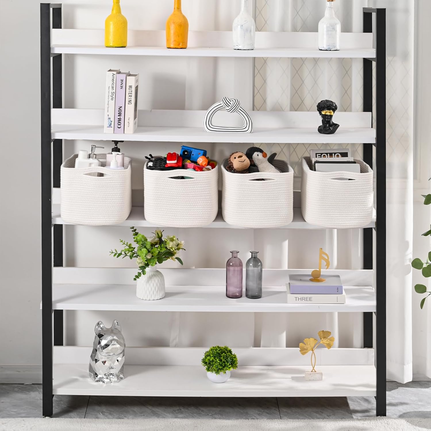 - DECORATIVE CUTE WEAVED BASKETS: ICERZCZ is dedicated to tidy and organizing beautifully for the home. A stylish and practical way to display eye-catching items on tables and counters. Not only will our shelf baskets set help you organize your items, its sleek, sophisticated shape and neutral colors will complement any decor