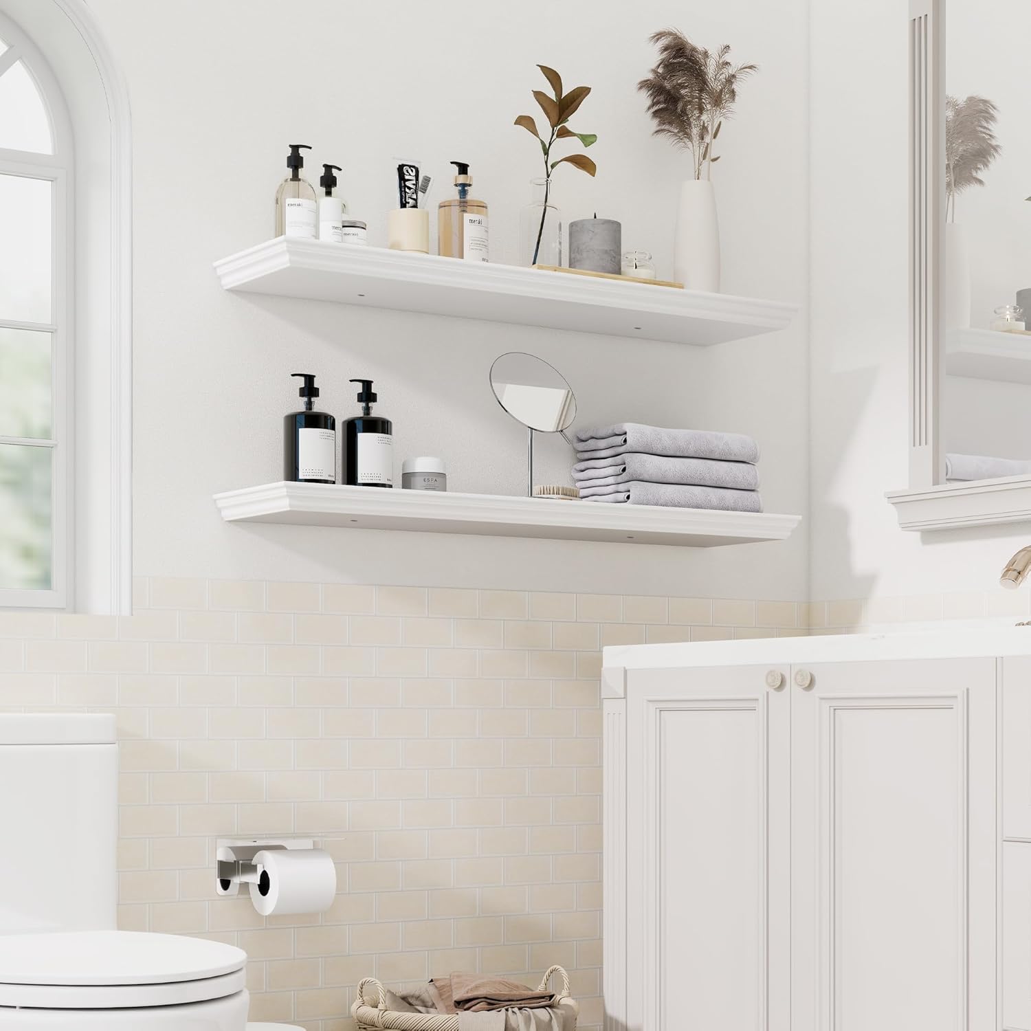 - Multi-Purpose Floating Shelves for Wall: Upgrade any space with these retro, sleek white shelves! Perfect as shelves for the room wall, book shelf for the wall, living Room, office, bedroom, bathroom, or kitchen shelves
