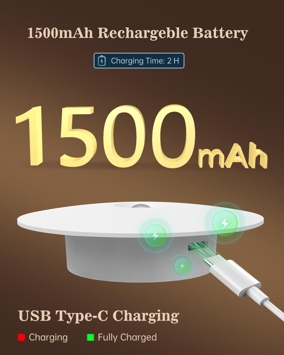 - 【Rechargeable 1500mAh】Powered by a 1500mAh battery, this magnetic led light lasts 12–24 hours in continuous mode. Charge 2 lights simultaneously via USB-C cable (included) in just 2 hours—convenient and energy-efficient!
