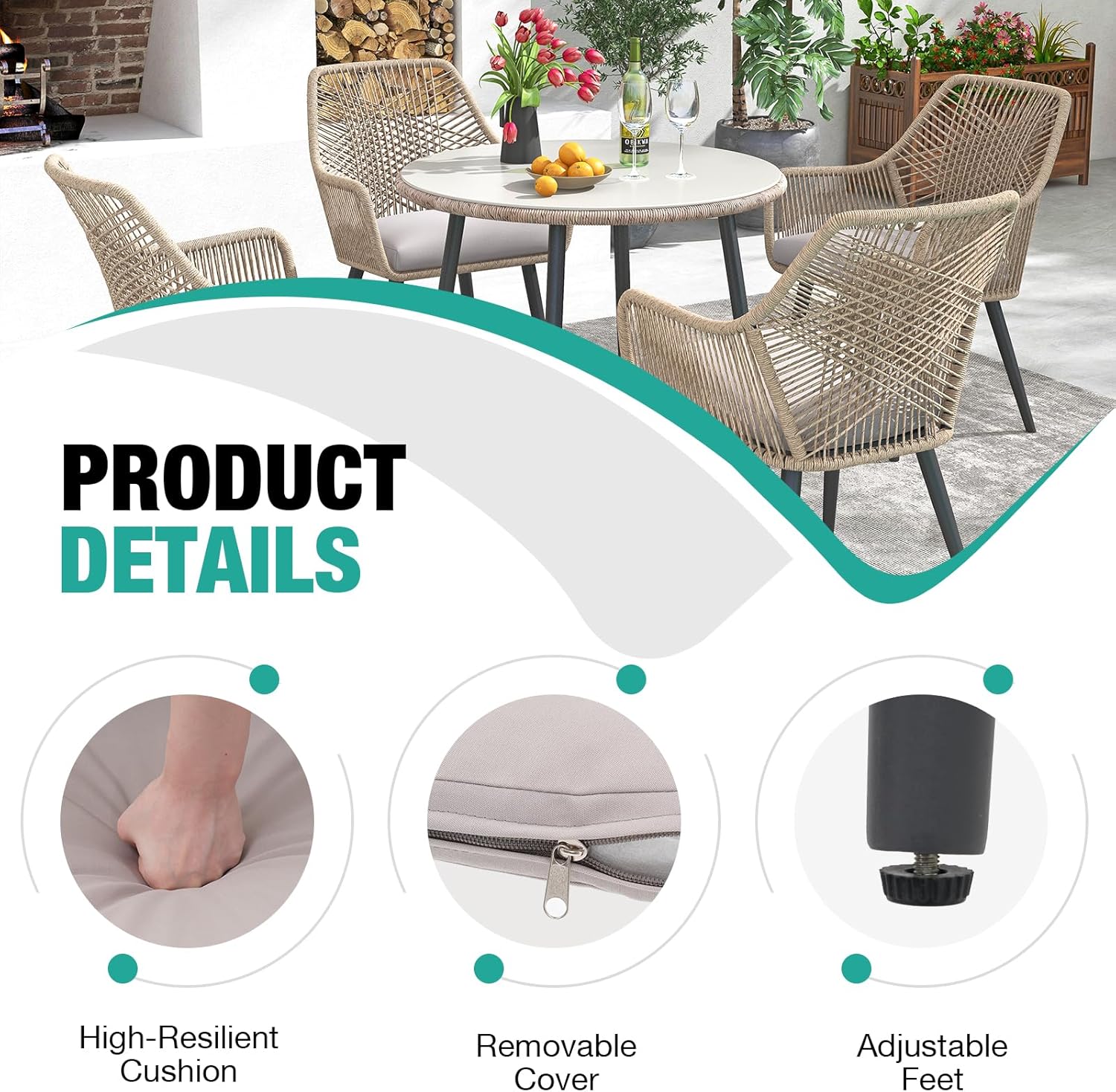 Patiorama Patio Dining Chair Set of 6, Woven Rope Outdoor Dining Chair w/Steel Frame, All-Weather Twisted Rattan Chairs w/Armrest & Cushion, Outdoor Dining Wicker Chairs for Backyard Garden(Beige)