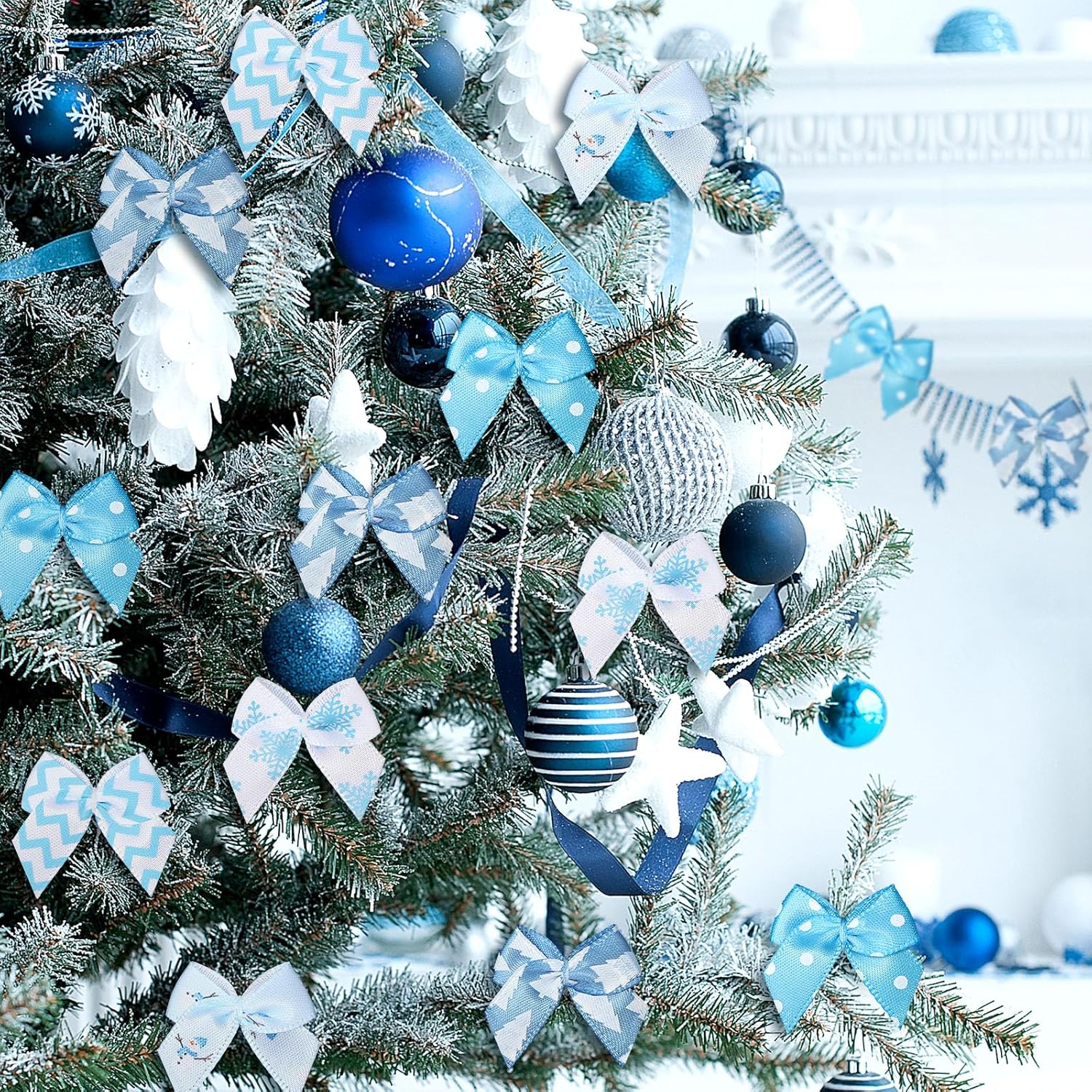 - What You Will Get: you will receive 150 pieces of 2.5 cm x 2.5 cm Christmas blue and white mini bows with 5 different kinds of styles, 30 pieces account for each style; You could use them to decorate your room or gifts on Christmas, or you could share them with your friends or family members