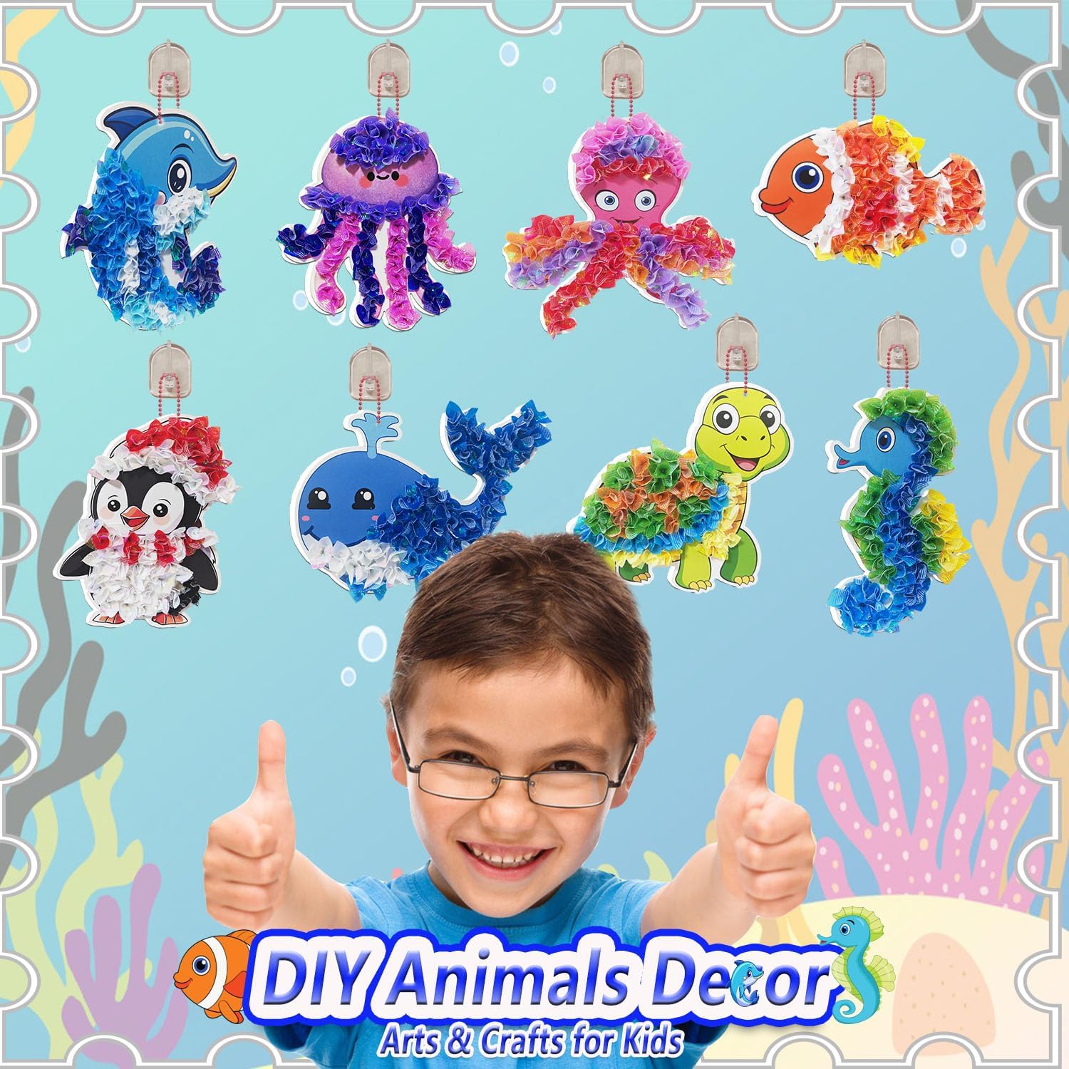 - **3. ๐ Complete All-in-One Ocean Craft Kit Everything included for hours of creative play: โ 8 adorable foam sea animals (Jellyfish, Seahorse, Octopus, Blue Whale, Dolphin, Penguin, Clownfish, Sea Turtle) โ 800+ shiny fabric squares (assorted ocean colors) โ 2 poke sticks + protective working pad โ easy instructions (Perfect for beach trips, playdates, or quiet time!)