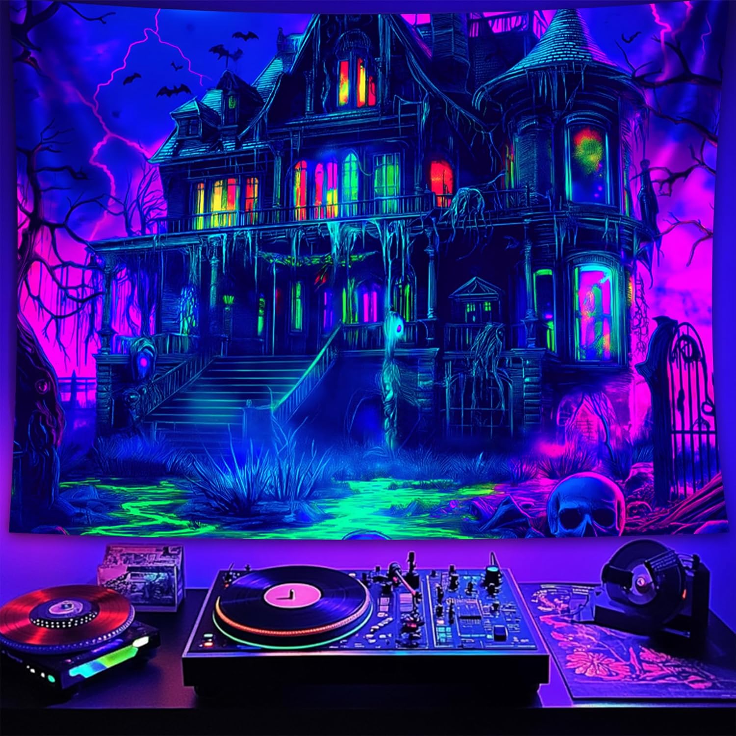 • 【Blacklight Tapestry】Designed for blacklight events, the intricate Halloween art on this blacklight tapestry pops with color in the dark.