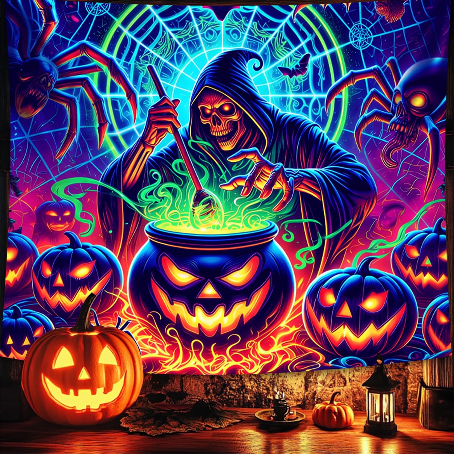 - 【Blacklight Tapestry】Designed for blacklight events, the intricate Halloween art on this blacklight tapestry pops with color in the dark.