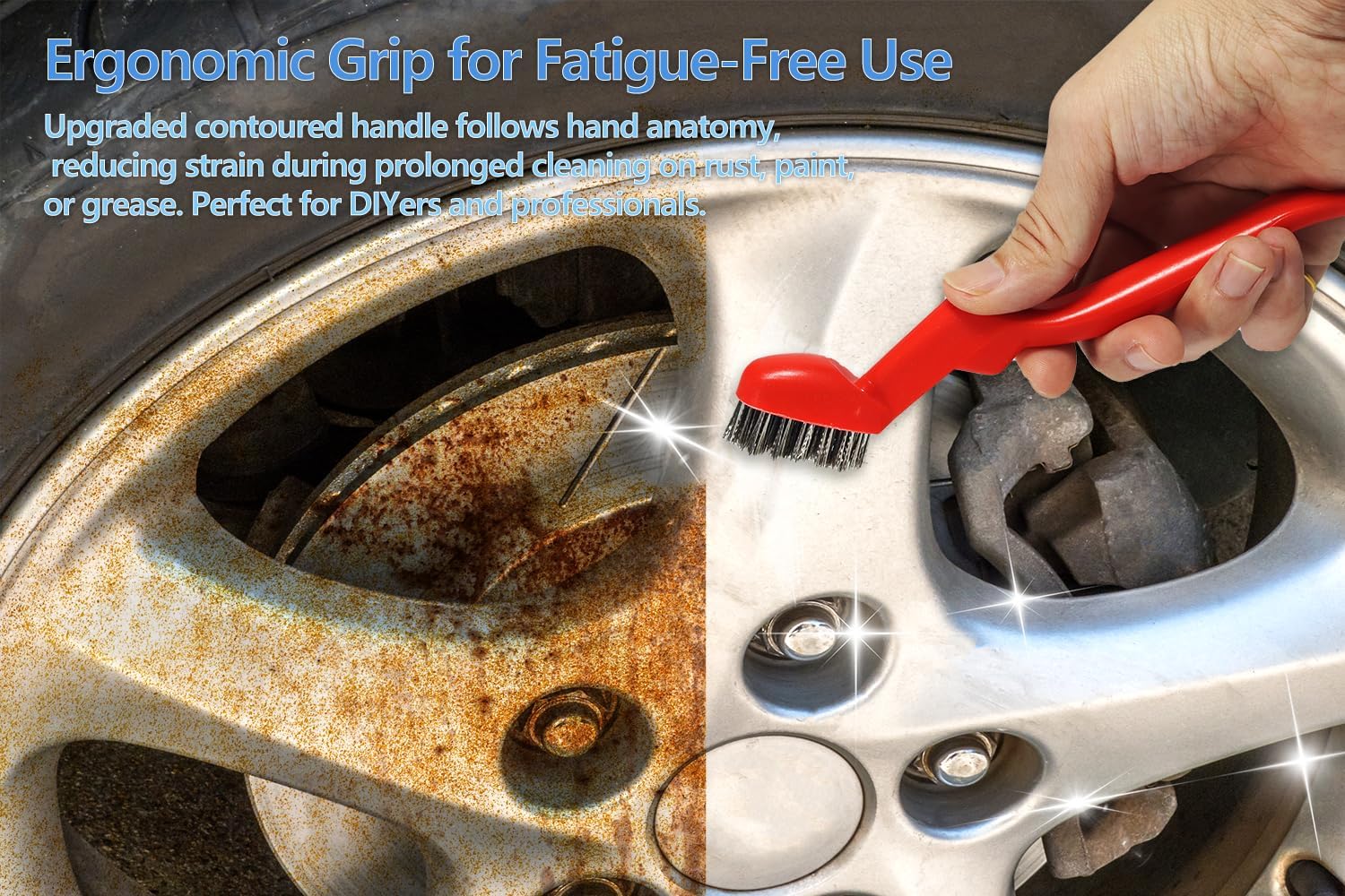 - Ergonomic Curved Grip – 30% Less Hand Fatigue – Palm-contoured handle locks in during scrubbing (like rust removal), reducing strain to keep hands comfortable even after long use.