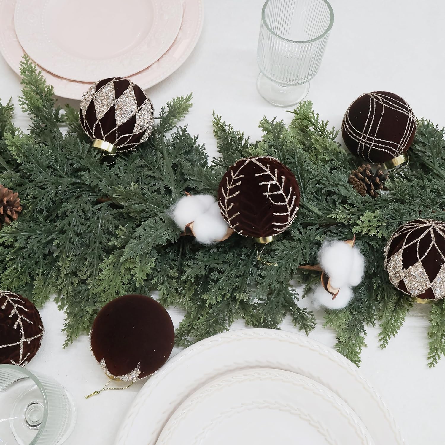 3.15INCH Brown Velvet Ornaments for Christmas Tree, 12PCS Glitter Flocked Christmas Ornaments Decorations Balls Set Decor