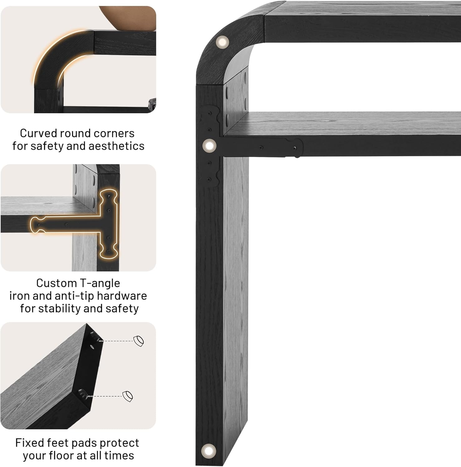 - 【Sturdy & Safe】- Made from high-quality MDF, this long curved console table for entryway includes CUSTOM T-shaped brackets and anti-tipping hardware for secure installation, ensuring stability and safety