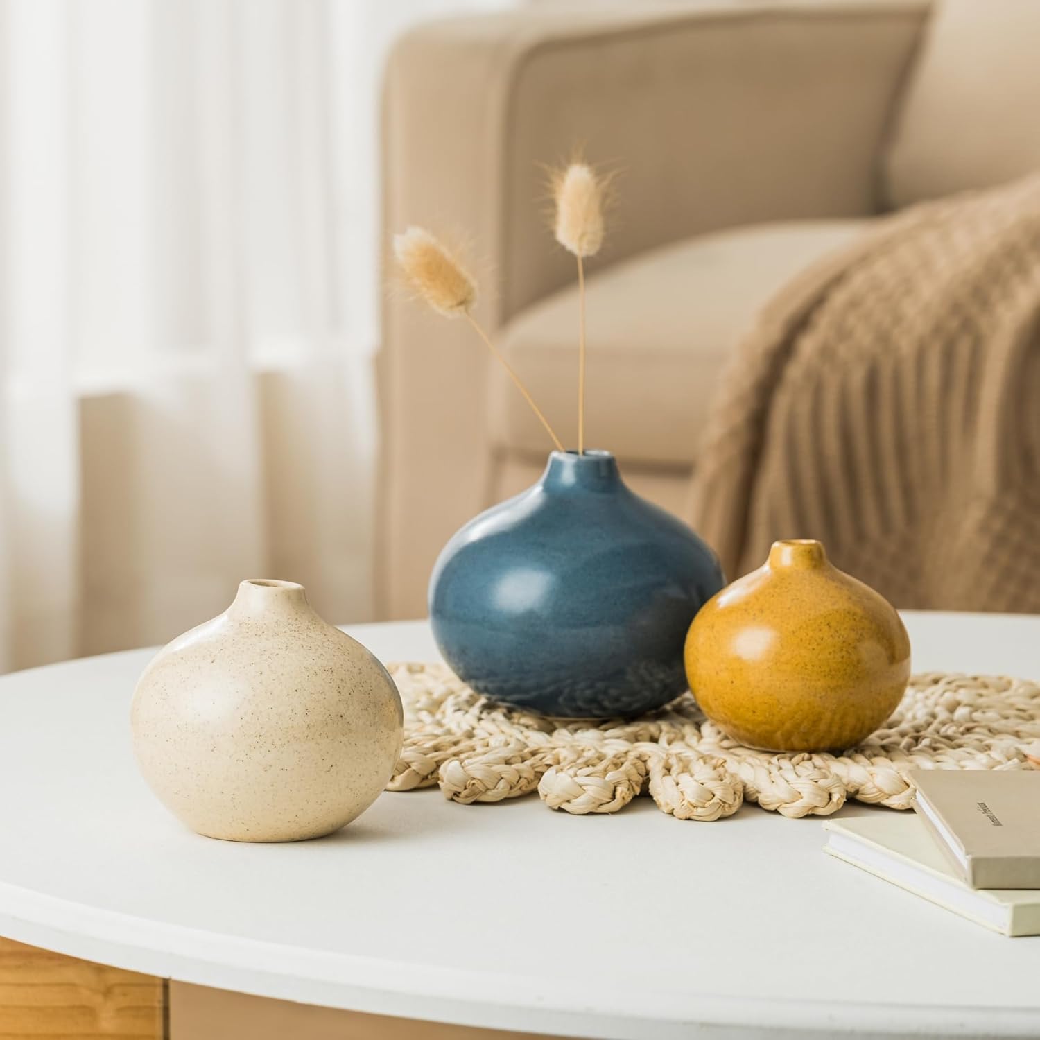 Ceramic Vase Set of 3,Small Vase for Home Decor,Mini Flower Vase, Decorative Vase for Table Living Room,Bedroom, Kitchen, Bathroom, Bookshelf