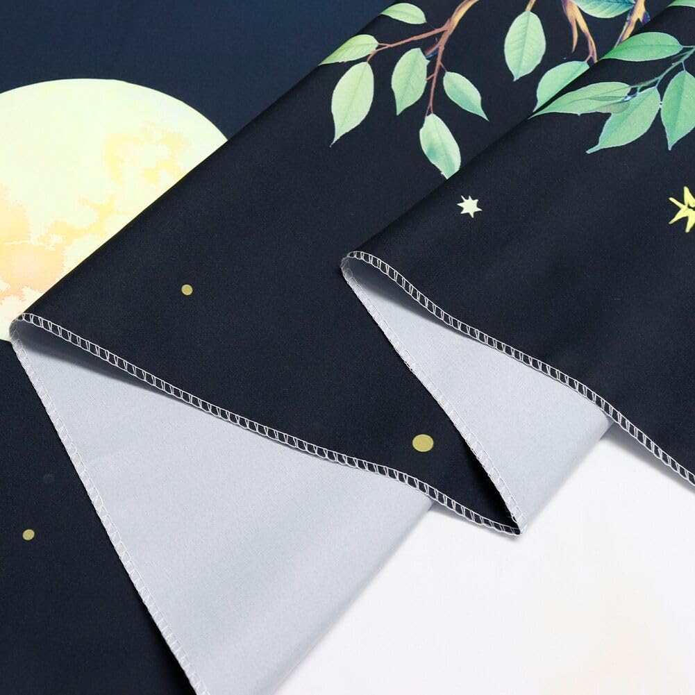 - Multiple Uses: The UV reactive moon tapestry can be used indoors and outdoors. It can be decorated living room, bedroom, university dormitory, office, classroom, picnic blanket, ceiling, room partition, furniture cover, TV background, party and other places.