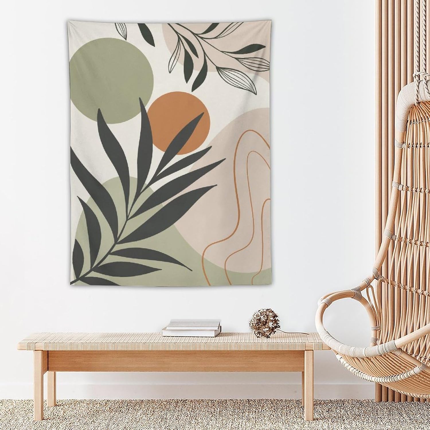Abstract Bohemian Mid Century Tapestry, Tropical Leaves Modern Geometric Archway Minimalist Bohemian Botanical Aesthetic Wall Hanging, Sage Green Gold Home Decor Art for Bedroom 60x80 Inch