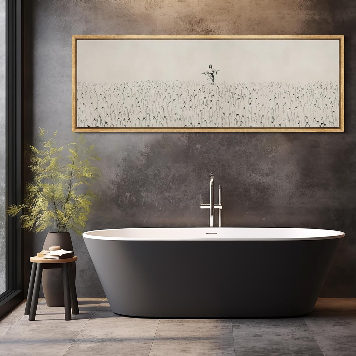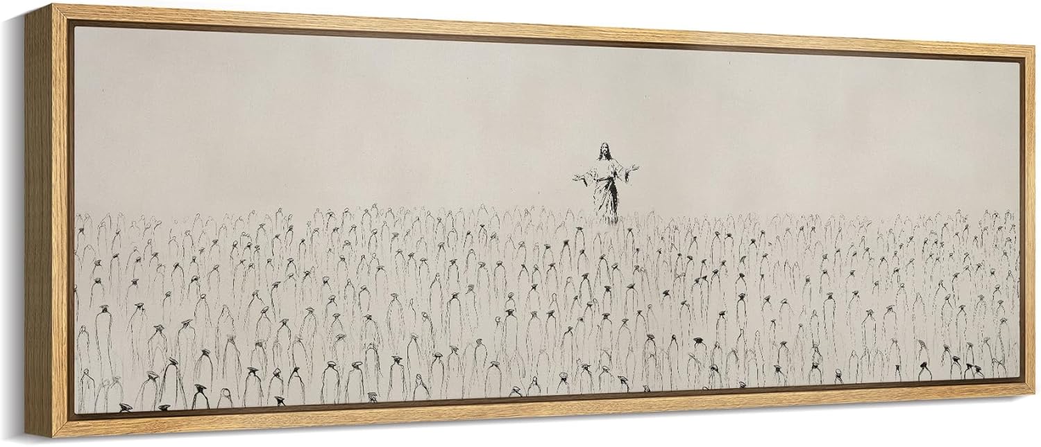 MUDECOR Large Framed Canvas Print Wall Art Jesus Among The People Monochrome Religious Illustrations Decorative Colorful Multicolor for Bedroom - 60"x20"