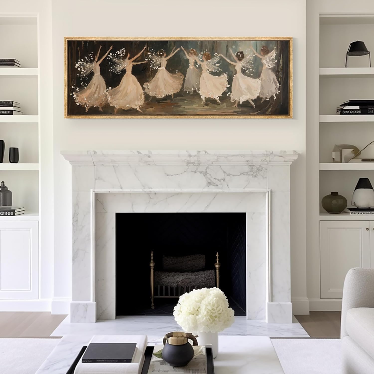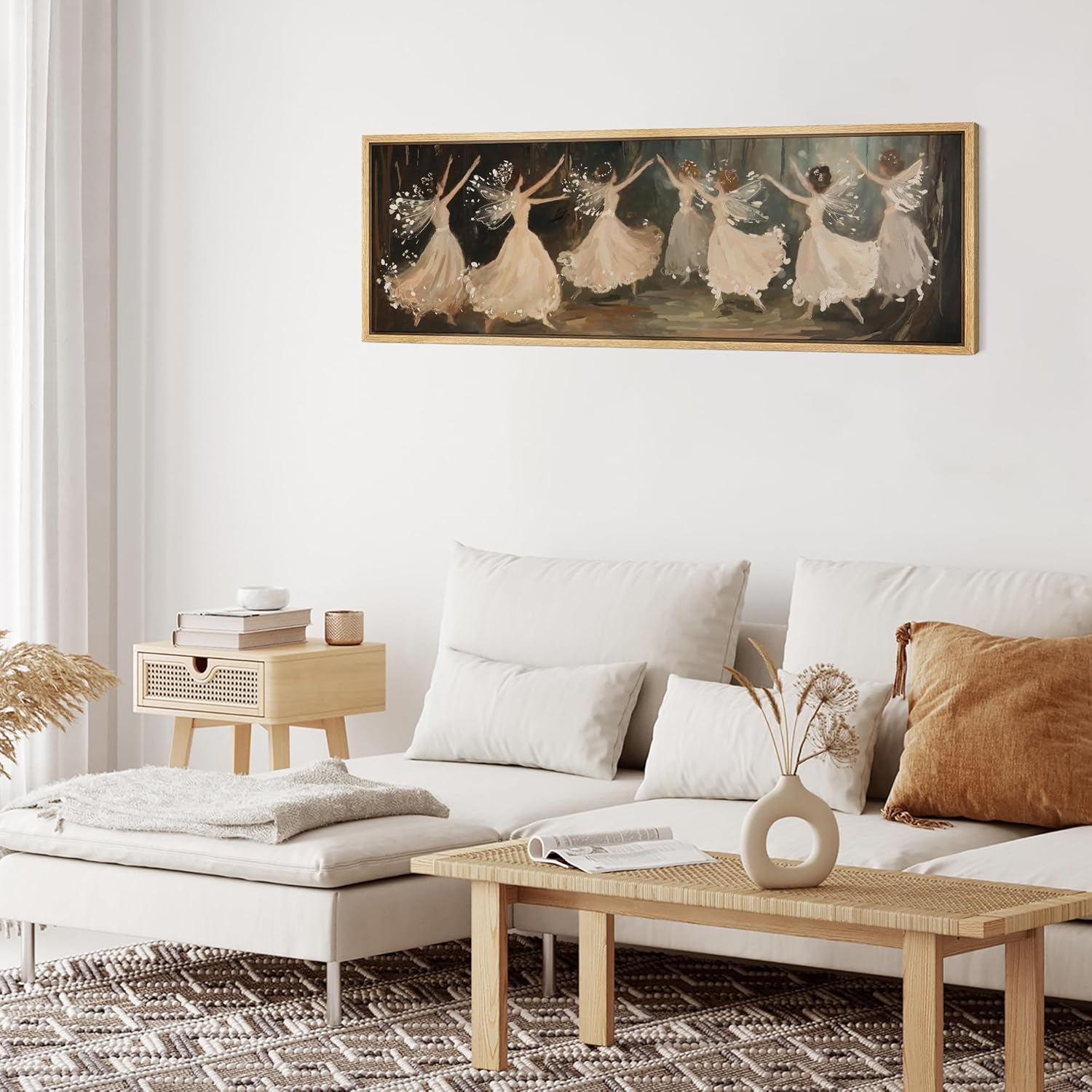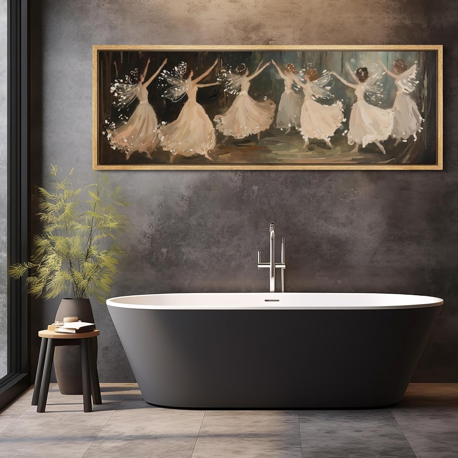 MUDECOR Large Framed Canvas Print Wall Art Ballet Dancers in Motion Romantic Impressionist Dance Scene Illustrations Decorative Colorful Multicolor for Bedroom - 60"x20"