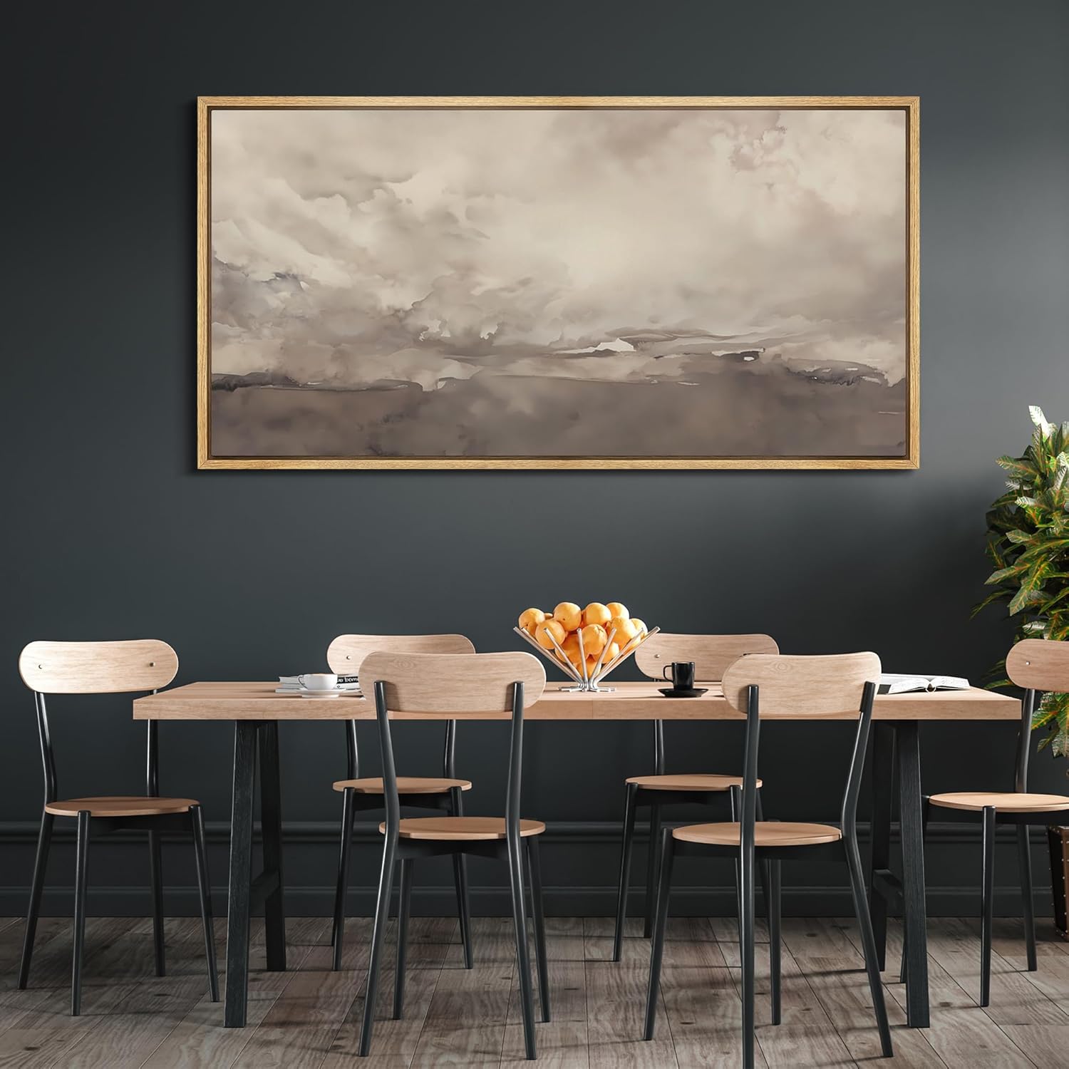 MUDECOR Extra Large Framed Canvas Print Wall Art Misty Landscape Neutral Tranquil Abstract Nature Painting in Earth Tones Illustrations Decorative Colorful Multicolor for Bedroom - 60"x30"