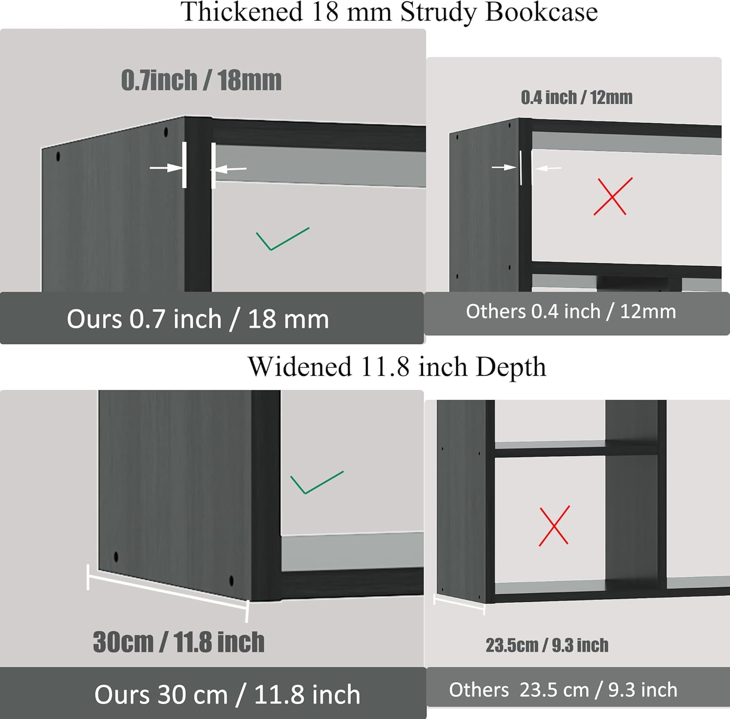 - 【Spacious Organization】71"H x 55"W x 11.8'' D dimensions for this large storage bookshelf. Maximizes vertical space with 16 versatile open compartments in graduated sizes. Effortlessly accommodates books, decorative objects, storage bins, and awkwardly shaped items for whole-home storage solutions.