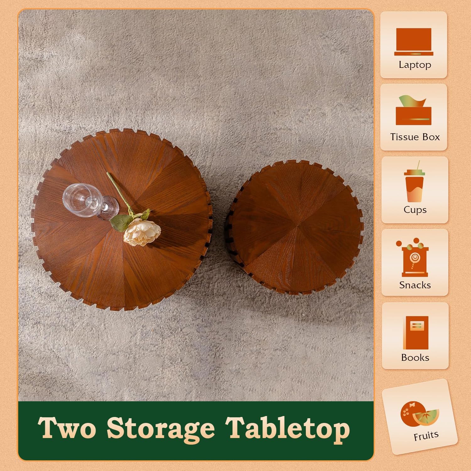 - A Fusion of Modern and Classic Styles: The 2 piece nesting coffee table combines faux wood grain texture with sleek circular form, making it adaptable to both contemporary and traditional interiors. Whether in a minimalist setting or alongside vintage décor, the nesting coffee tables for living room harmonizes effortlessly with diverse styles.