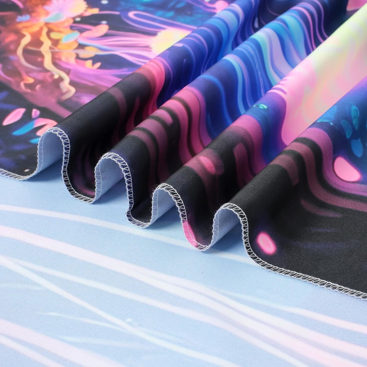 - UV Reactive Fantasy Design: This blacklight tapestry features luminous jellyfish floating through an enchanted forest scene. The vibrant colors glow brilliantly under UV light, creating a dreamlike underwater-meets-wilderness effect.