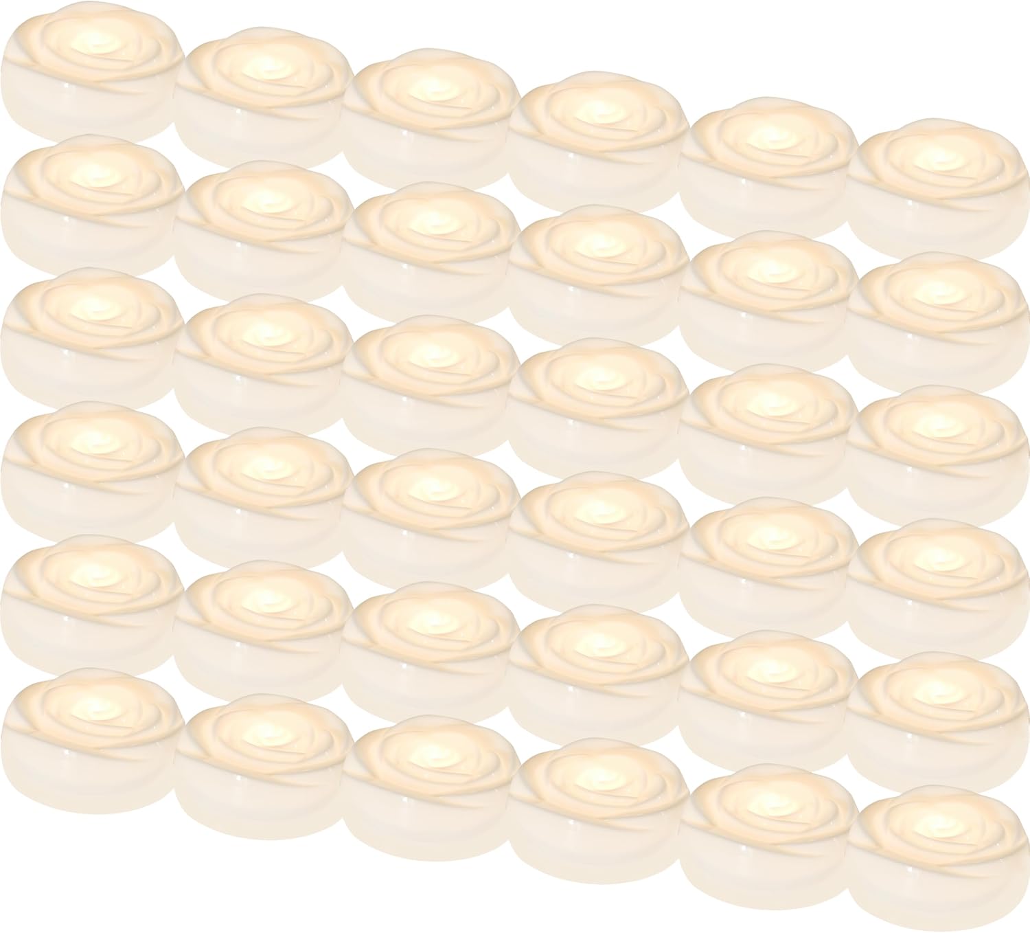 Aignis 36pcs Flameless LED Floating Candles, White Rose Plastic Tealight Battery Operated, 120+ Hours Glow Time, Cozy Light for Romantic Pool/Bathtub/Hot Bath/Wedding Centerpiece Decor(D2.83*H1.42)