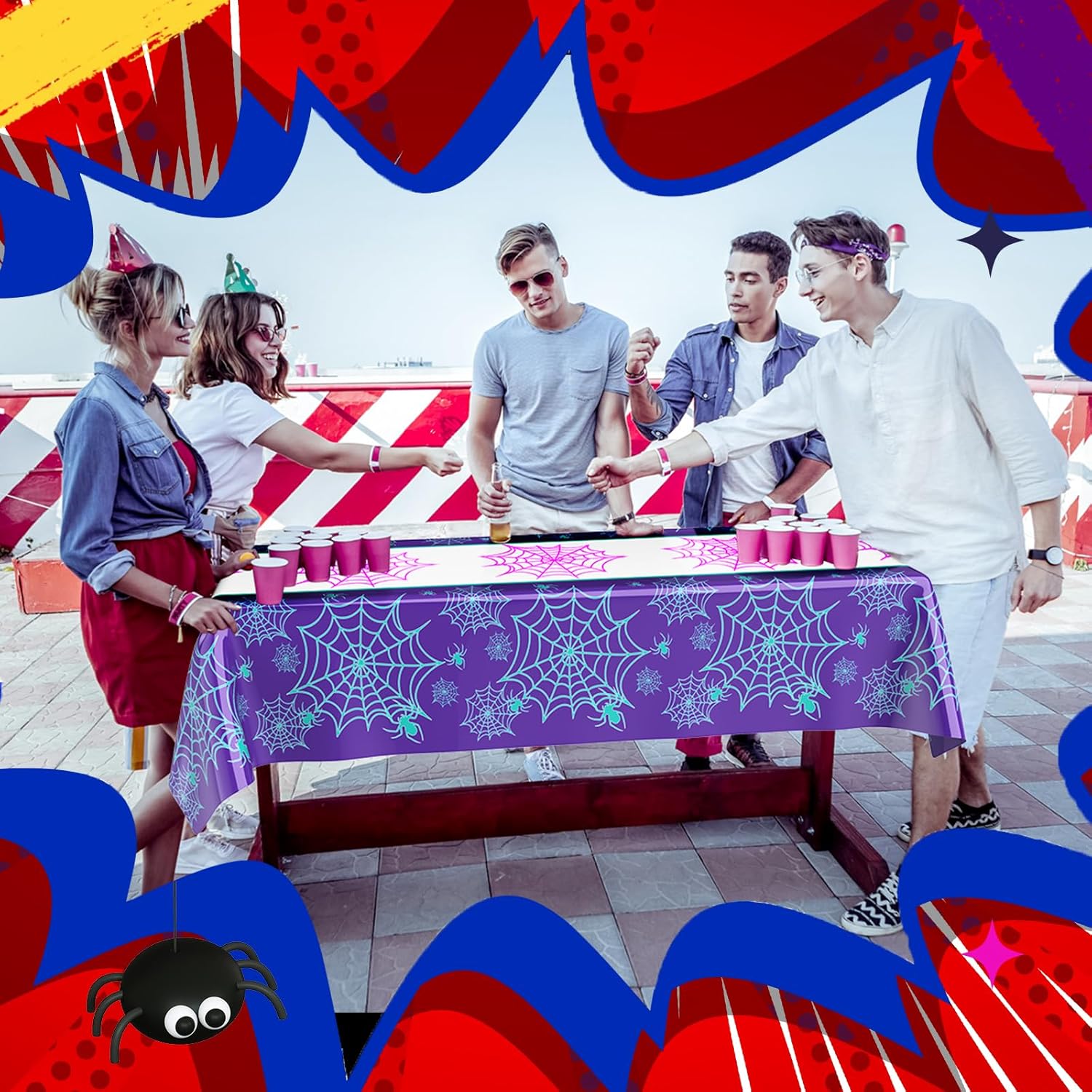 - Vibrant Design: featuring vibrant prints of spiders and webs, these tablecloths embody a strong cartoon spider vibe; The clear and realistic purple, black and red spider design makes them the ideal decoration for spider birthday parties, anniversaries, retirement parties, family gatherings, Hawaiian parties, and even Christmas parties