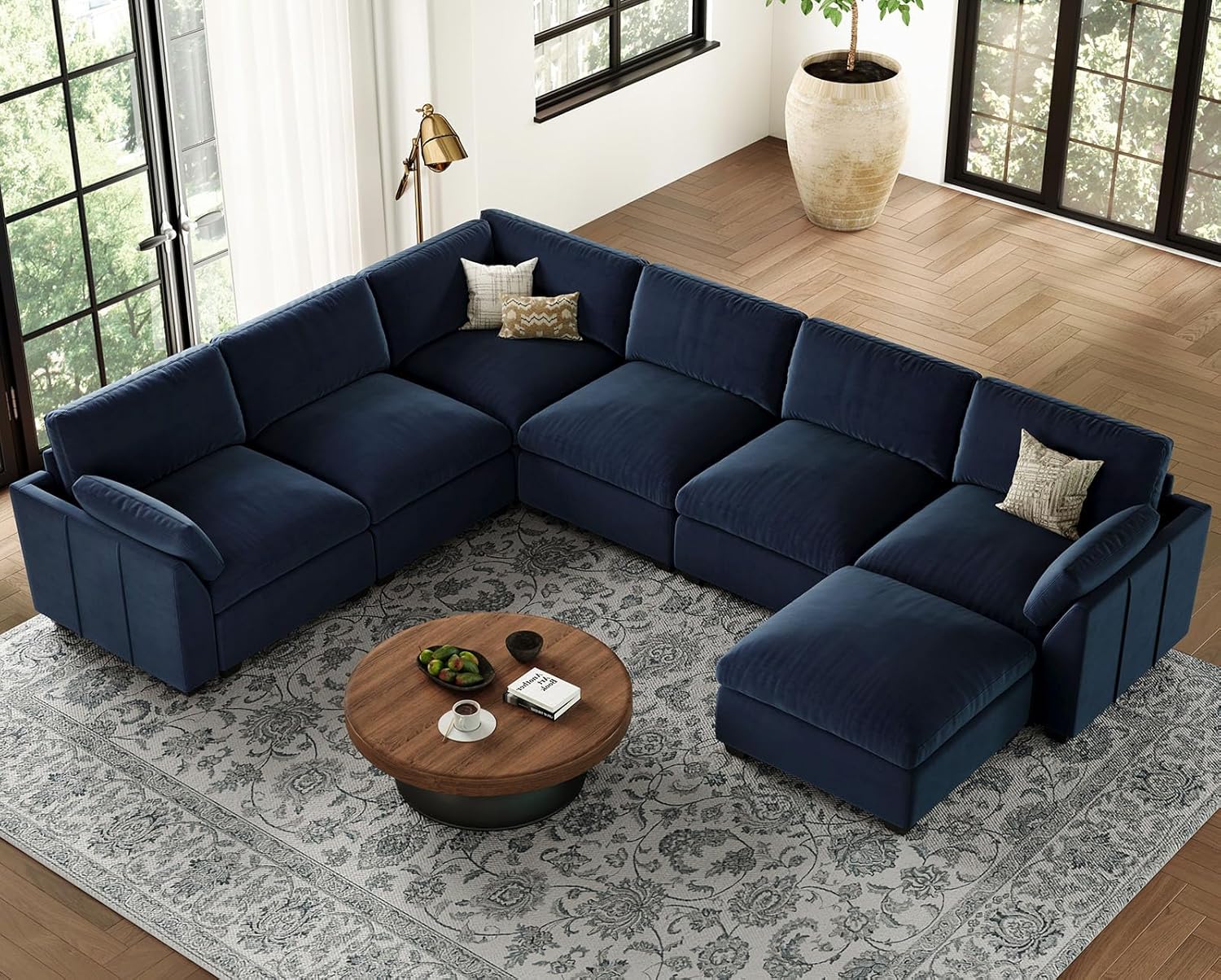 Belffin Oversized Sectional Couch,137.8" 7-Seater U Shaped Modular Sectional Sofa with Ottoman,Convertible Velvet Couches for Living Room,Blue Couch