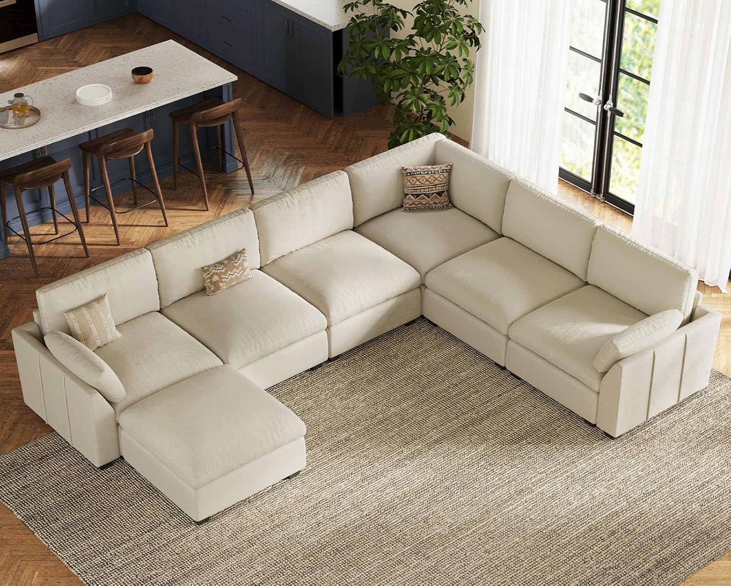 Belffin Oversized Sectional Couch,137.8" 7-Seater U Shaped Modular Sectional Sofa with Ottoman,Convertible Velvet Couches for Living Room,Beige Couch