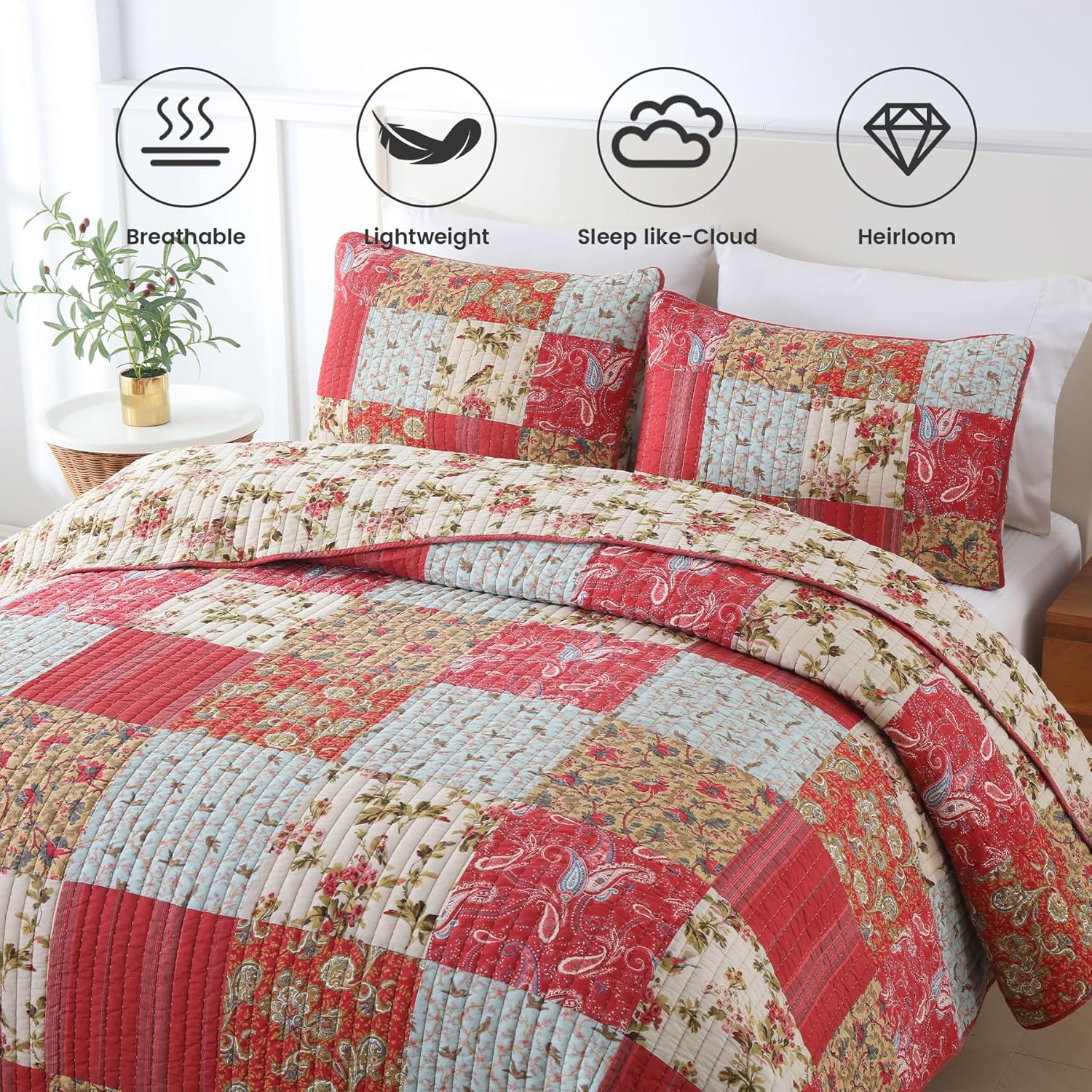 - Elegant Home Decor: This bedding set includes one king-size quilt (90 *98 inches) and two pillow shams (20 *27 inches) made with the same workmanship. The comforter set combines patchwork craft with patterns, adding a touch of sophistication to your sleeping space. Surprise your loved ones with this elegant and cosy gift, perfect for Mother's Day, Women's Day, Christmas, or any other special occasion.