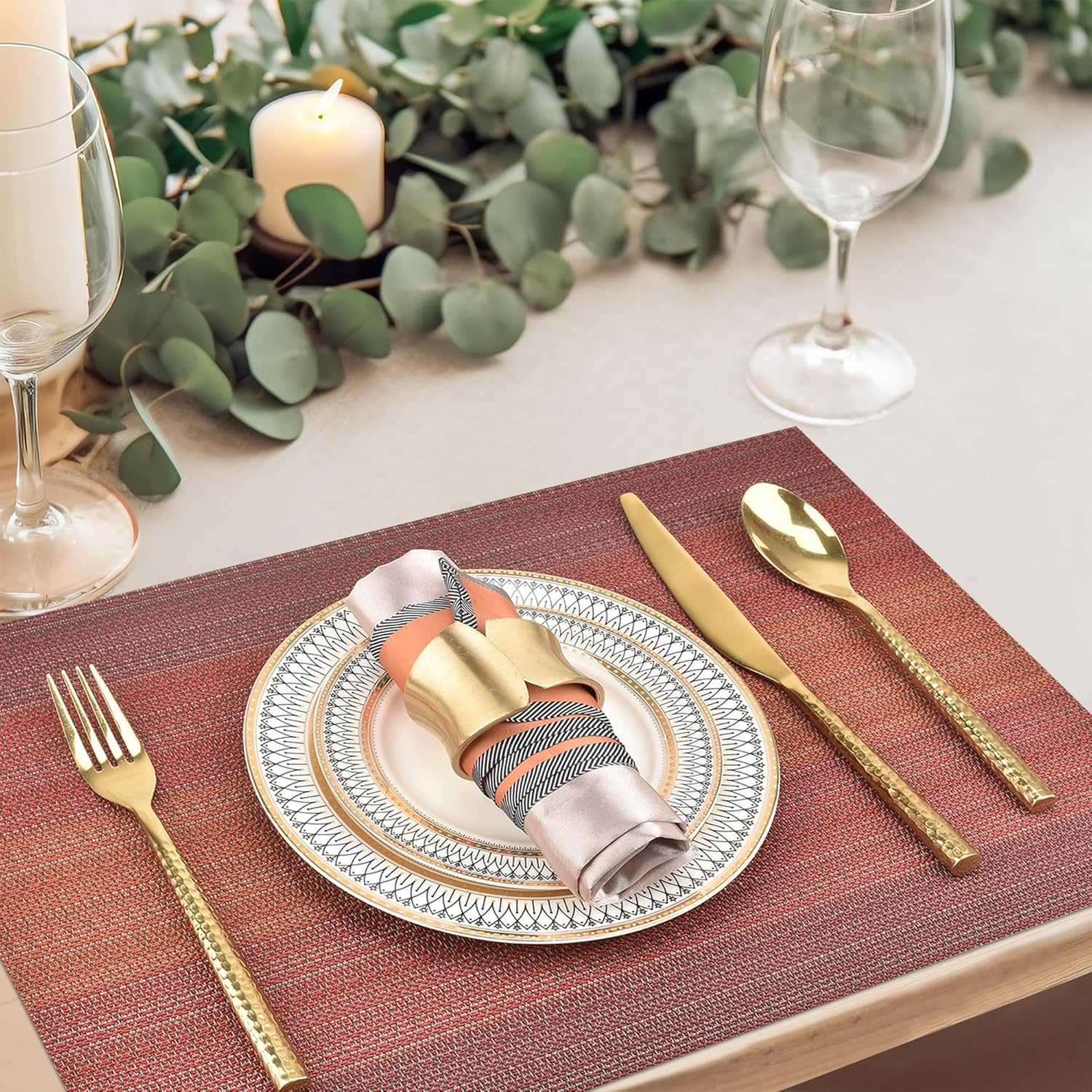 Placemats Set of 8 - Easy Clean Washable Vinyl Placemats - Wipeable Heat Resistant Table Mats for Dining Table - 17.7x11.8 Inch (8, Red Gradient)