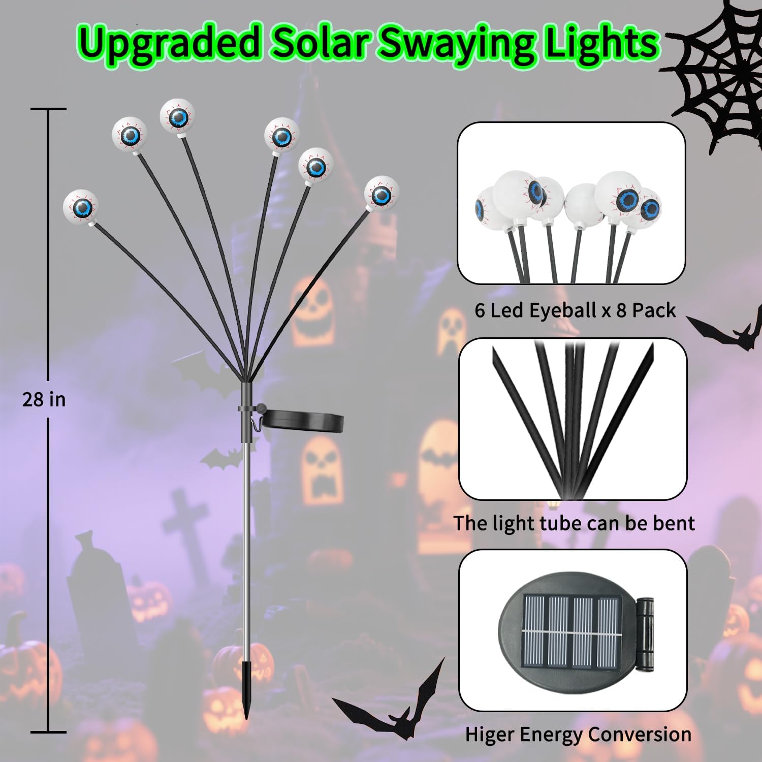 VOTTGO Halloween Solar Lights Outdoor, 8 Pack 48LED Scary Solar Eyeball Pathway Lights, 2 Modes Waterproof Swaying Solar Firefly Lights for Garden Yard Pathway Halloween Decorations, Green