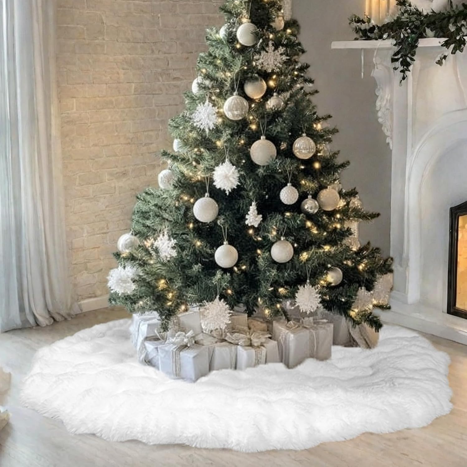 - ๐35 inches and 48 inches, snow white, warm and soft, it is the perfect Christmas tree skirt to dress up the Christmas tree and a favorite for winter pets!