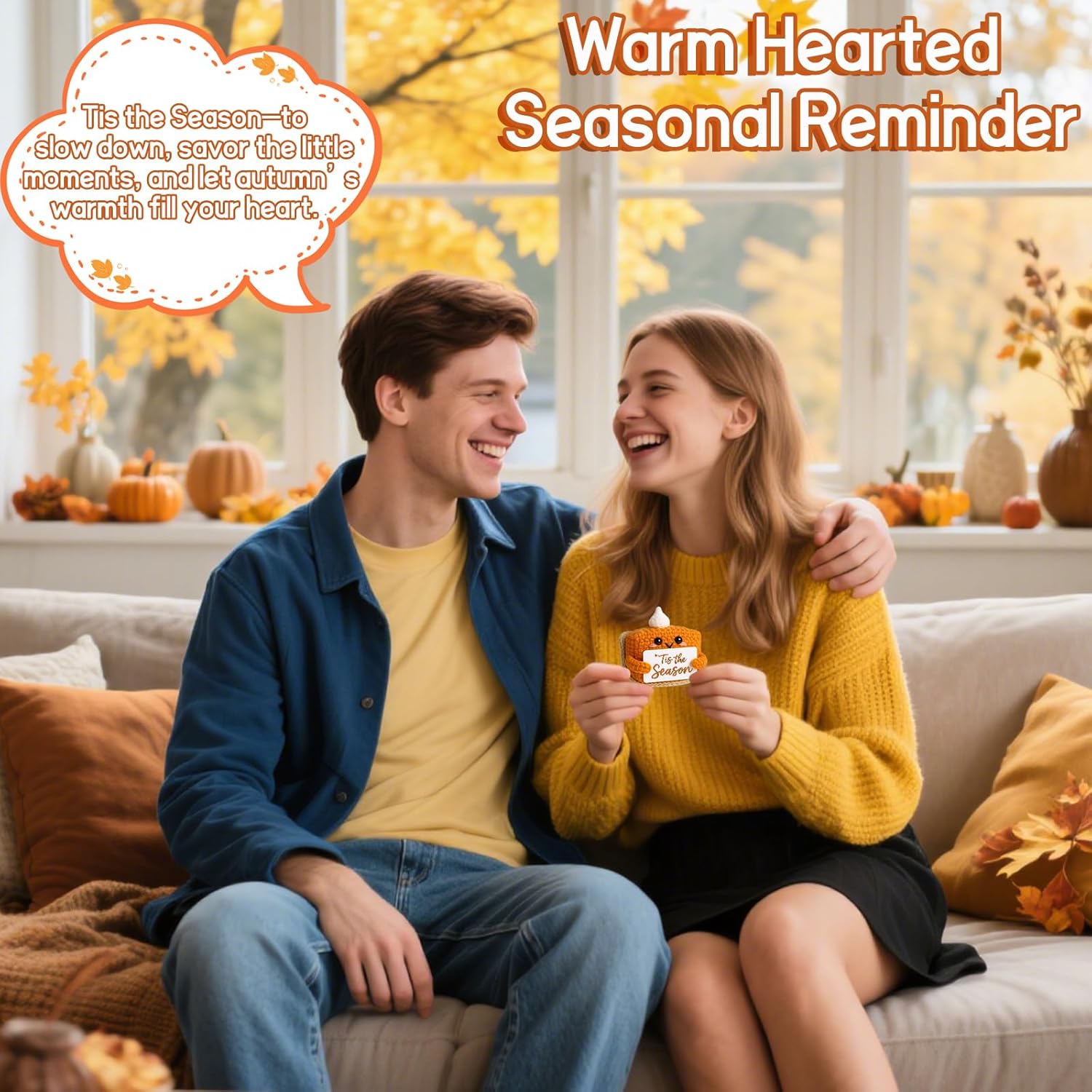 - Festive Crochet Pumpkin Pie – Delightful handmade crochet pumpkin pie with a whipped cream top and a "'Tis the Season" card, perfect for adding a cozy festive touch to your home.