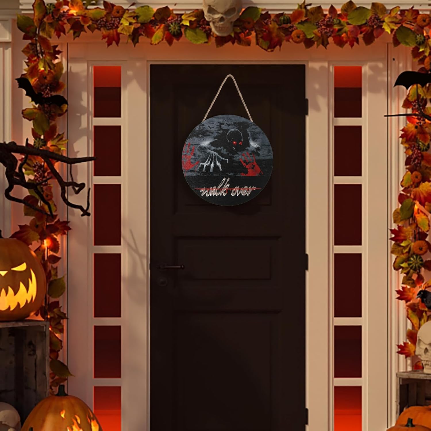 Halloween Wooden Round Hanging Sign Decoration Horror Skeleton Outdoor Wooden Plaques Yard Front Door Hanger Home Wall Decor for Halloween Wreath Party Supplies Decor