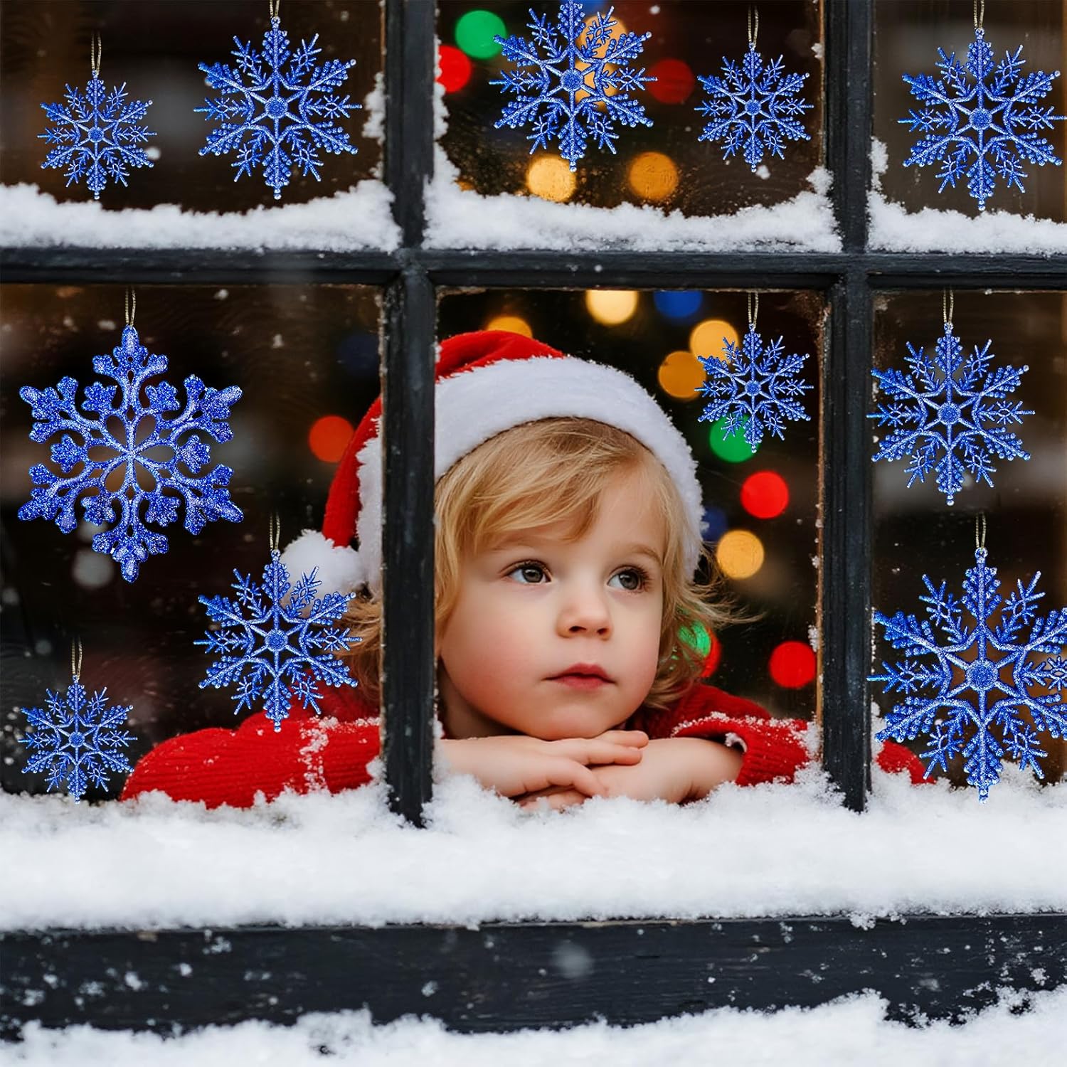 - Complete Snowflake Set:This 36-piece set of blue silver snowflake ornaments includes 4 sizes and 2 styles: 8pcs 4.2", 8pcs 4", 10pcs 3", and 10pcs 1.8". Double-sided glitter adds sparkle, and 36 silver hanging strings make them easy to use. It’s a stunning collection of christmas decorations for tree or crafts
