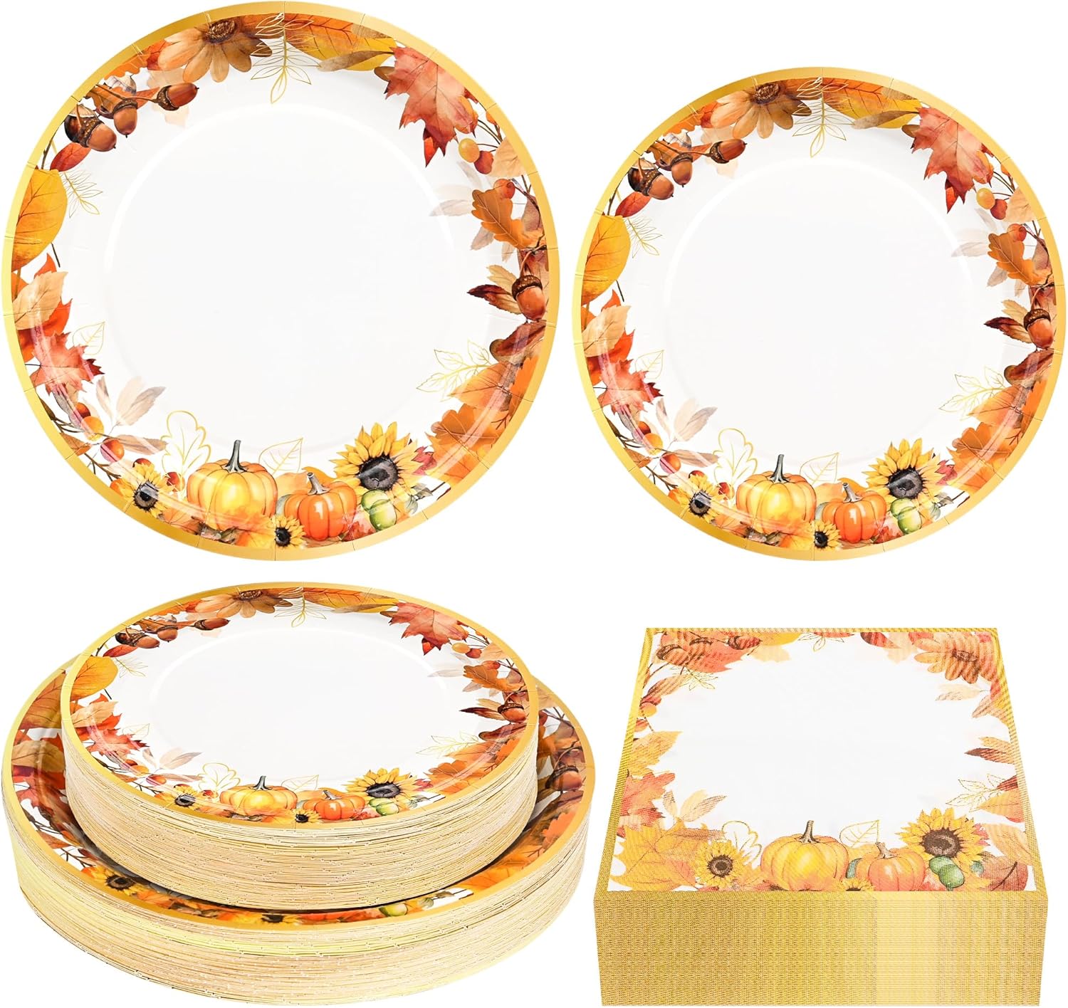 - Color : 150Pcs Fall Paper Plates and Napkins Party Supplies