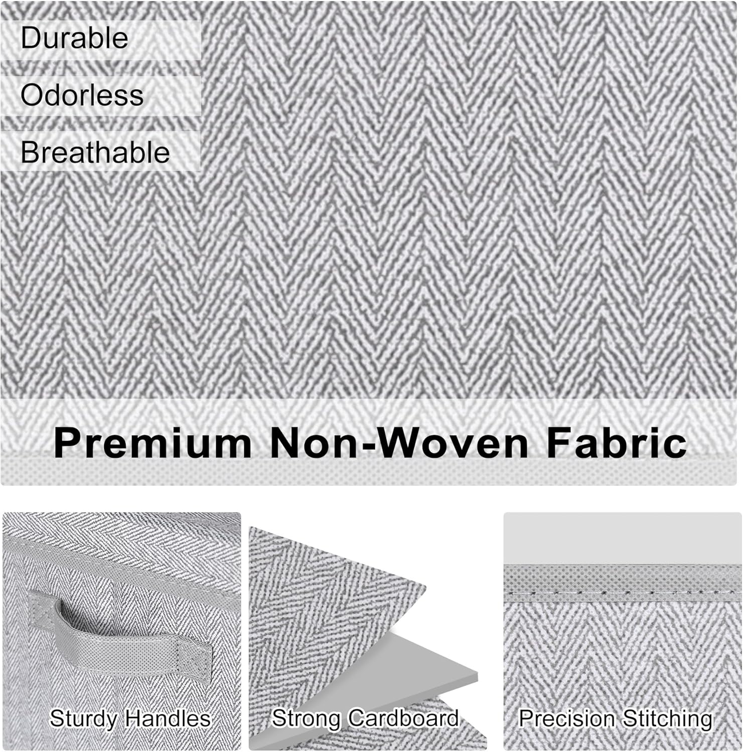 WUIKE 3 Pack Large Storage Bins with Lids, Fabric Closet Shelf Organizers, FoldableStorage Baskets with Cover for Bedroom, Herringbone Gray