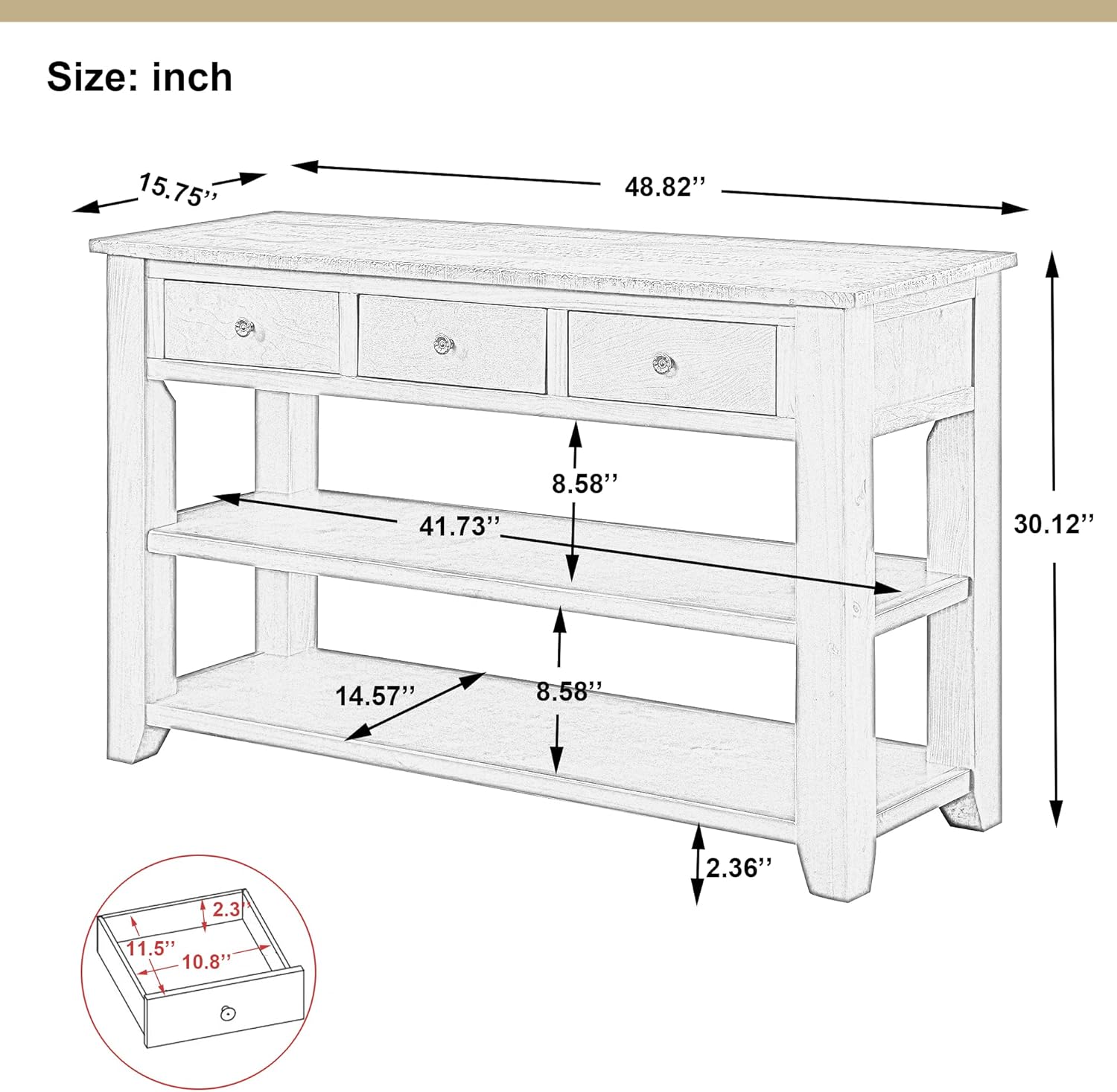 Farmhouse Wood Entry Console Table 48-Inch Modern Sofa Entryway Table with Drawers and Storage Shelves for Entrance Living Room (Blue)