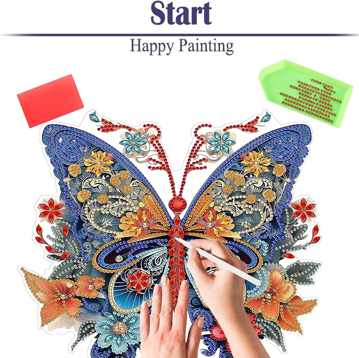 Diamond Painting Kits for Adults Beginners, 5D Full Drill Flowers and Butterfly Crystal Art Desktop Ornament, DIY Single Sided Home Office Desk Decor, Creative Craft Gift Set with Tools