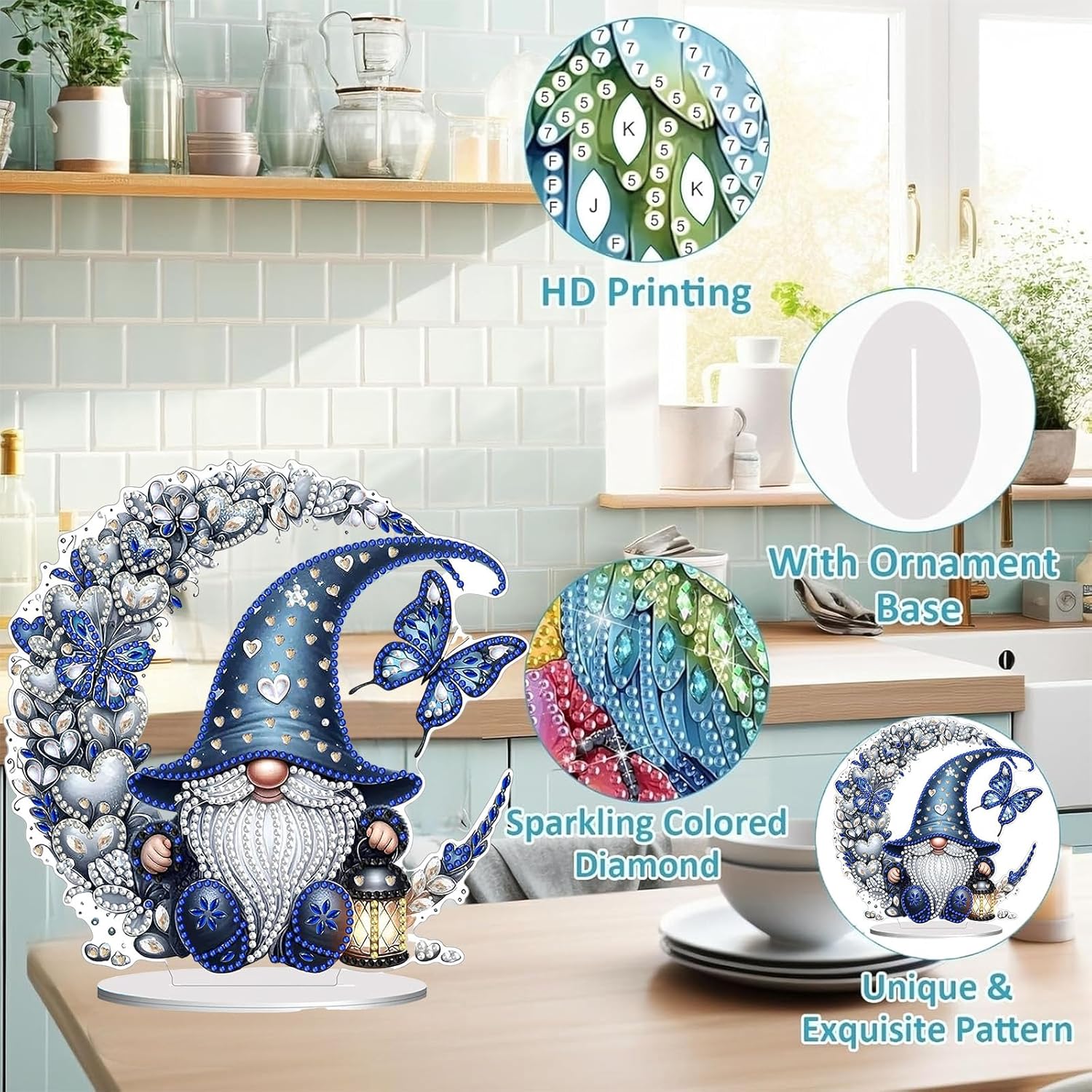 - 【Home Decor】:Diamond Art Painting ornament with base design, you can place it in your living room, fireplace, cabinet, shelf and other places you like. The combination of single-sided sparkling diamonds and the beauty of shaped diamonds enhances the visual appeal and uniqueness of the artwork, and the inlaid rhinestones refract the shimmering luster under the light.