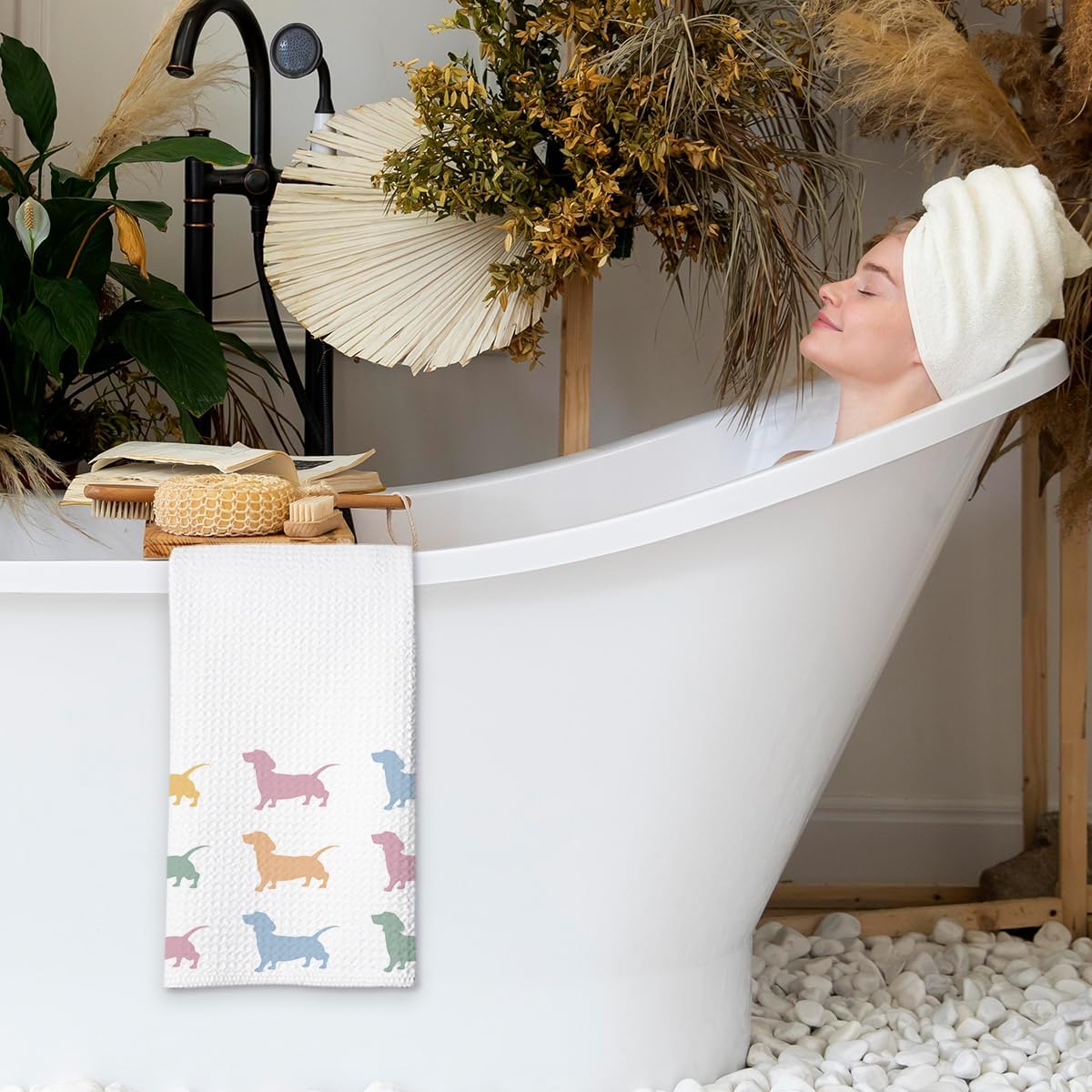 Dachshund Kitchen Towel, Waffle Weave Microfiber Wiener Dog Hand Towel, for Women, Dachshund Decor Accent for Bathroom or Kitchen